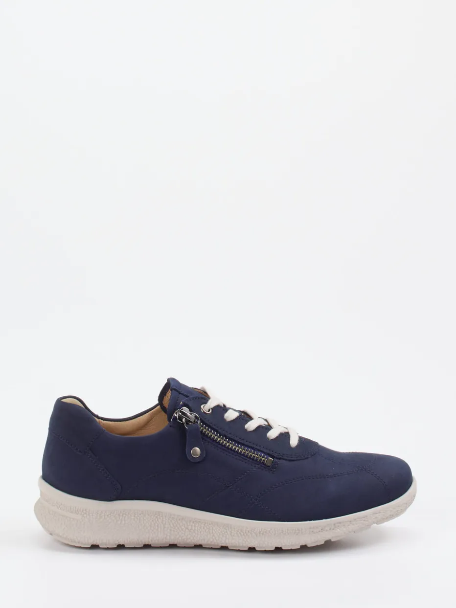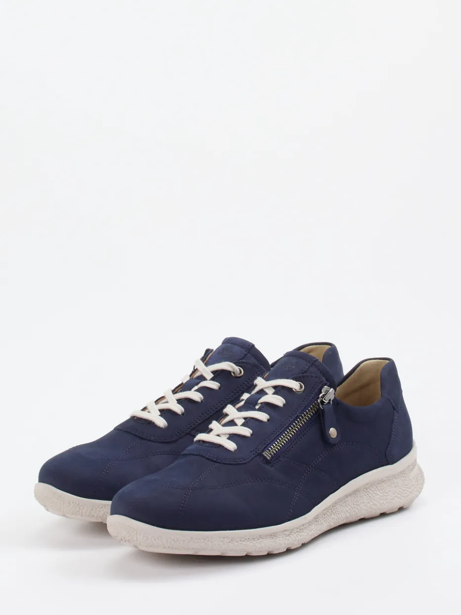 Moderner Komfort für jeden Tag.Hartjes präsentiert mit diesem Komfort-Sneaker ein stilvolles Modell im Freizeitbereich. Ideal für lange Tage auf den Beinen bietet der marineblaue Schnürschuh durch butterweiches Nubukleder mit samtiger Oberfläche und die gepolsterte Verarbeitung optimalen Tragekomfort. Der seitliche Reißverschluss erleichtert das Anziehen, während die helle Schnürung einen frischen Akzent setzt. Innen sorgt ein Lederfutter mit Dry-Clim-Einsatz für ein ausgewogenes Fußklima, ergänzt durch ein auswechselbares Kork-Fußbett. Die ultraleichte Gummisohle mit Profil gibt sicheren Halt und greift den Minimalismus-Trend stilvoll auf. Gut kombinierbar mit entspannten Casual-Looks. Komfort und unaufdringliches Design – typisch Hartjes.