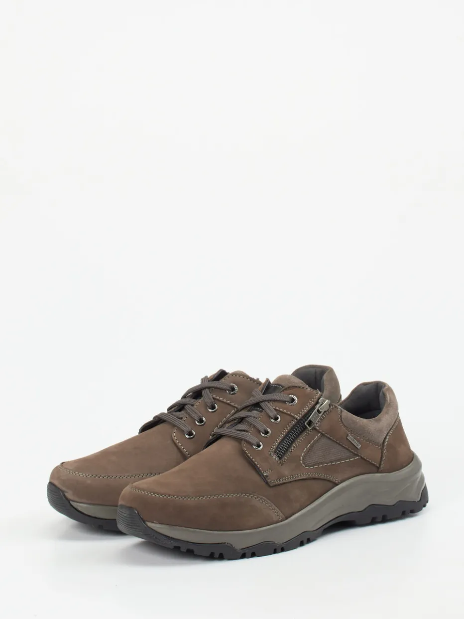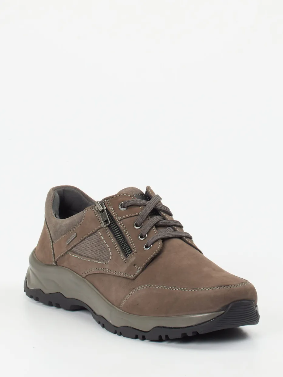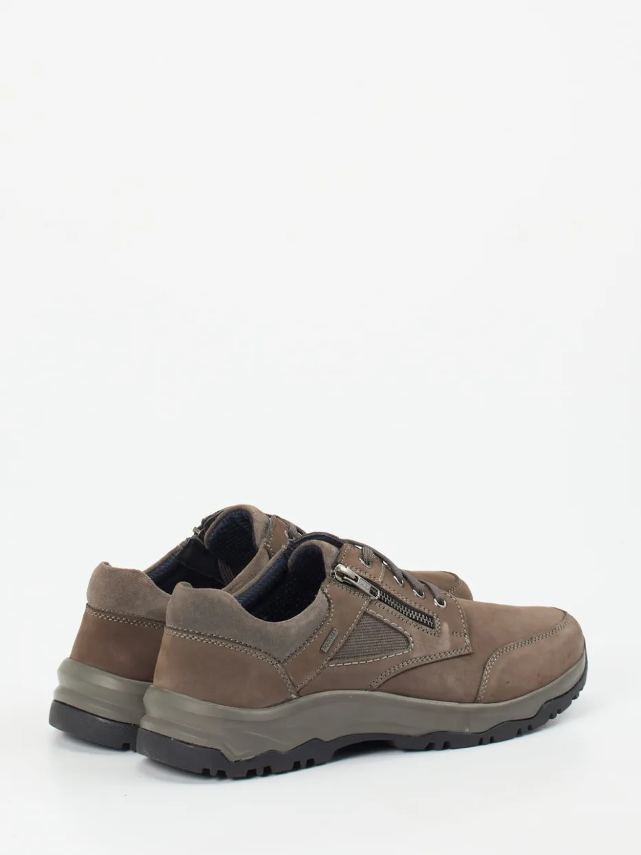 Der robuste Herrenhalbschuh überzeugt durch wetterfestes Nubukleder und funktionale Details wie seitlichem Reißverschluss und Profilsohle.