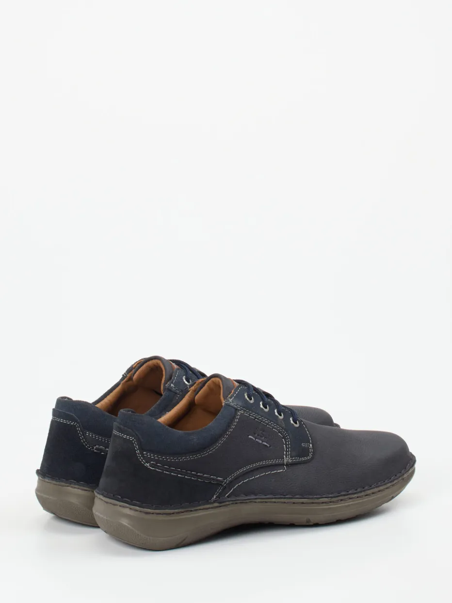 Komfort trifft klassische Linien.Josef Seibel bietet mit diesem Herren-Schnürschuh einen stilvollen Begleiter im Alltag. Die Kombination aus dunkelblauem Nubukleder mit samtigem Finish und kontrastierenden Nähten verleiht dem Modell eine markante Optik. Die rund geformte Silhouette, gepolsterte Einsätze am Einstieg sowie ein Innenfutter aus Leder und Textil sorgen für ein angenehmes Tragegefühl – selbst an langen Tagen. Dank Wechsel-Fußbett ist der Schuh auch für orthopädische Einlagen geeignet. Modische Details wie eine zweifarbige Ösenleiste und die profilierte Gummisohle unterstreichen den funktionalen Anspruch. Perfekt zu Chinos oder smarten Freizeithosen. Hochwertiger Laufkomfort mit bewährter Josef Seibel-Qualität.