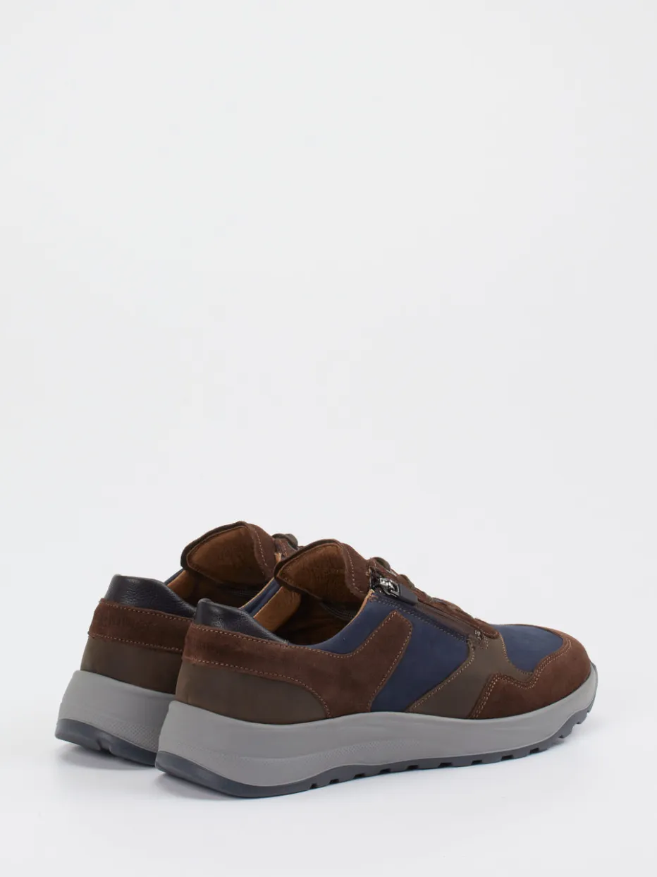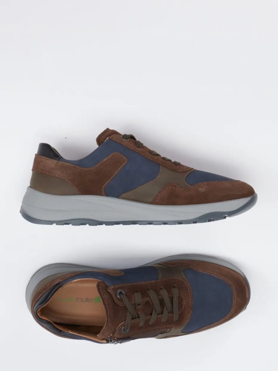 Funktion trifft Stil auf Schritt und Tritt.Waldläufer kombiniert bei diesem Herren-Komfort-Sneaker hochwertige Verarbeitung mit smarter Outdoor-Ästhetik. Ideal für den Spaziergang durch Stadt oder Park: Das samtig angeschliffene Veloursleder in Marineblau erhält durch olivgraue und braune Akzente Tiefe und Eigenständigkeit. Die abgerundete Form, gepolsterte Gummisohle und ein seitlicher Reißverschluss ergänzen das funktionale Design. Robuste Details wie die griffige Profilsohle und Ton-in-Ton-Nähte unterstreichen den sportlich-relaxeden Charakter, inspiriert vom „Quiet Outdoor“-Trend. Optimal zu Stretch-Jeans und wetterfester Jacke. Verlässlicher Tragekomfort – typisch Waldläufer.