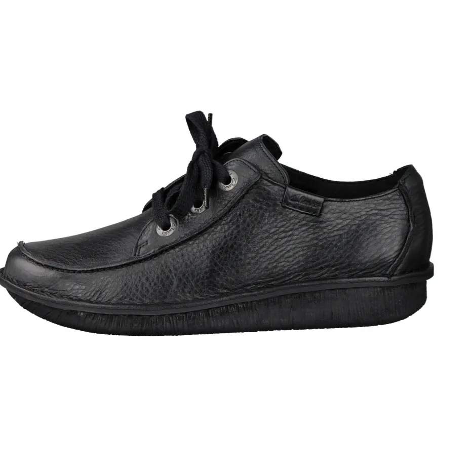 Der Clarks Schnürschuh kombiniert genarbtes Kalbleder mit einer ergonomischen Gummisohle für flexiblen Komfort und schlichte Eleganz – ideal im Alltag und zuhause.