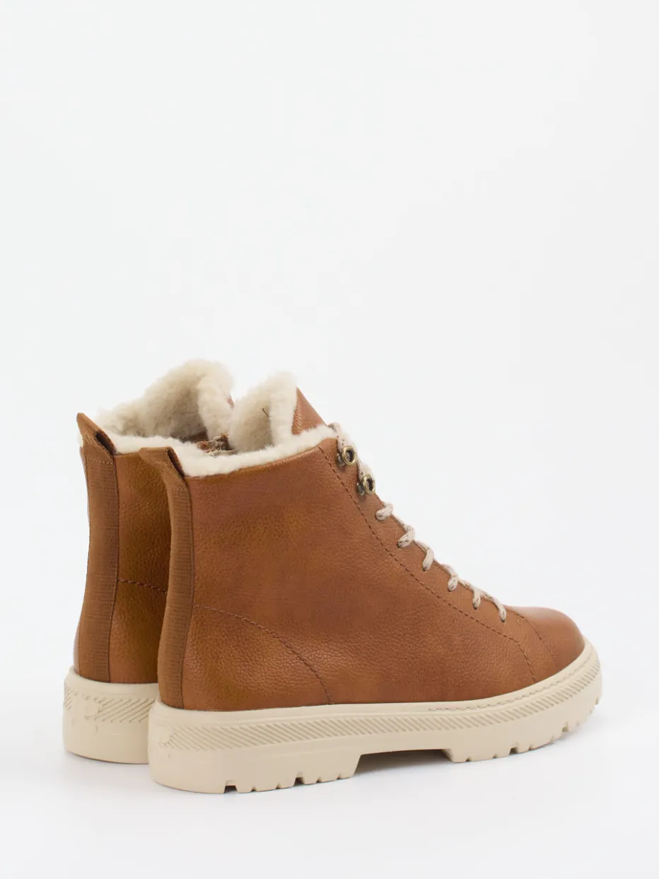 Diese Schnürstiefelette vereint hochwertiges Kalbleder mit softem Fellfutter und einer markanten Outdoor-Silhouette – ideal für stilbewusste Winterlooks.