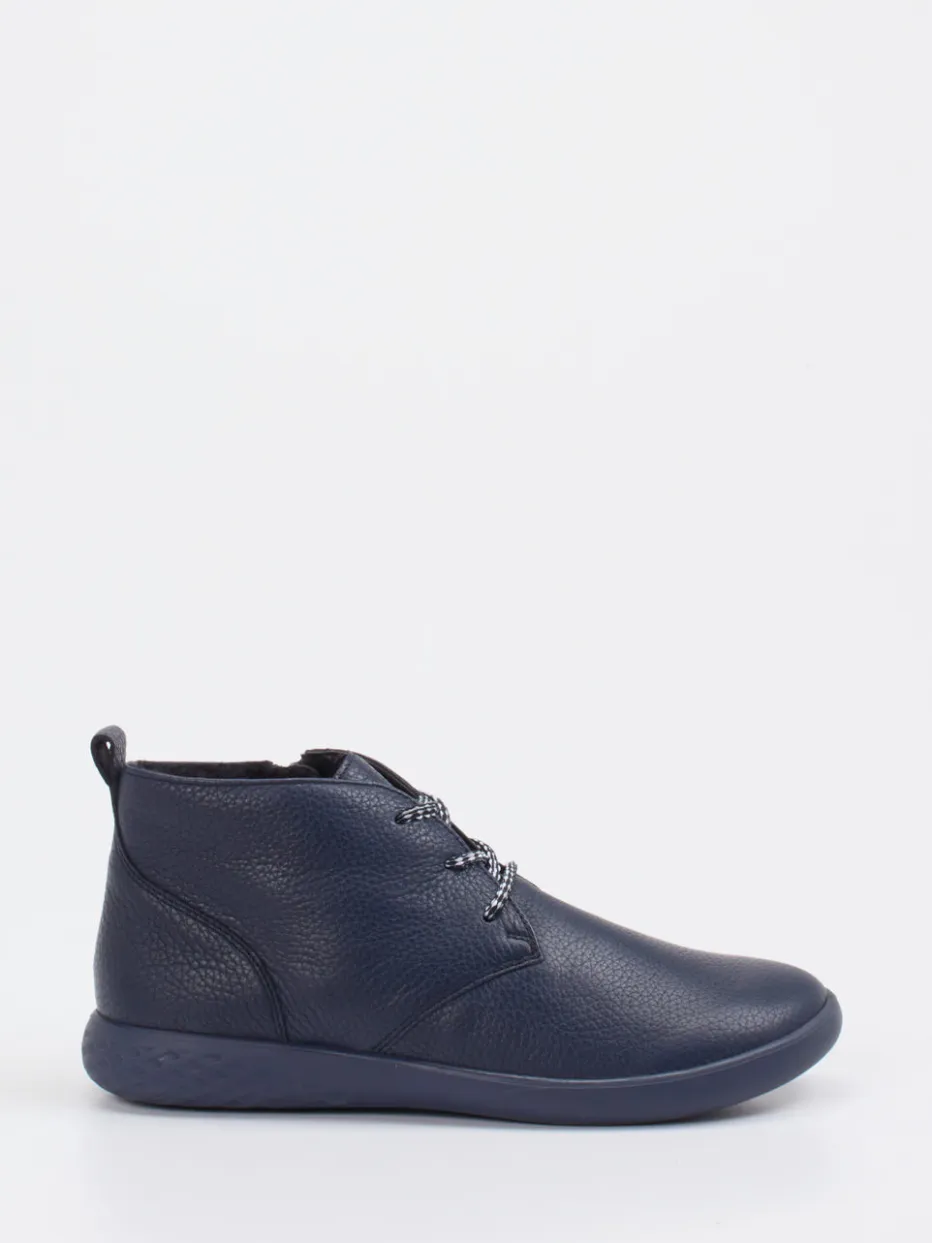 Komfort trifft auf cleanes Design.Waldläufer präsentiert eine Schnürstiefelette für Damen, die Komfort und Stil nahtlos verbindet. Ideal für entspannte Tage unterwegs bietet das Modell dank weichem, genarbtem Kalbleder langfristigen Tragekomfort. Das dunkelblaue Obermaterial wirkt zurückhaltend-edel und harmoniert mit der knöchelhohen Form sowie den zweifarbigen Schnürsenkeln und dem innenliegenden Reißverschluss. Eine rutschfeste Gummisohle mit Grip-Profil sorgt für sicheres Gehen in der Herbst-/Winterzeit. Die warme Textilfütterung unterstützt ein behagliches Tragegefühl, während die Weite H viel Raum für individuelle Einlagen lässt. Ein durchdachtes Komfortmodell für einen minimalistischen Alltag mit Anspruch.