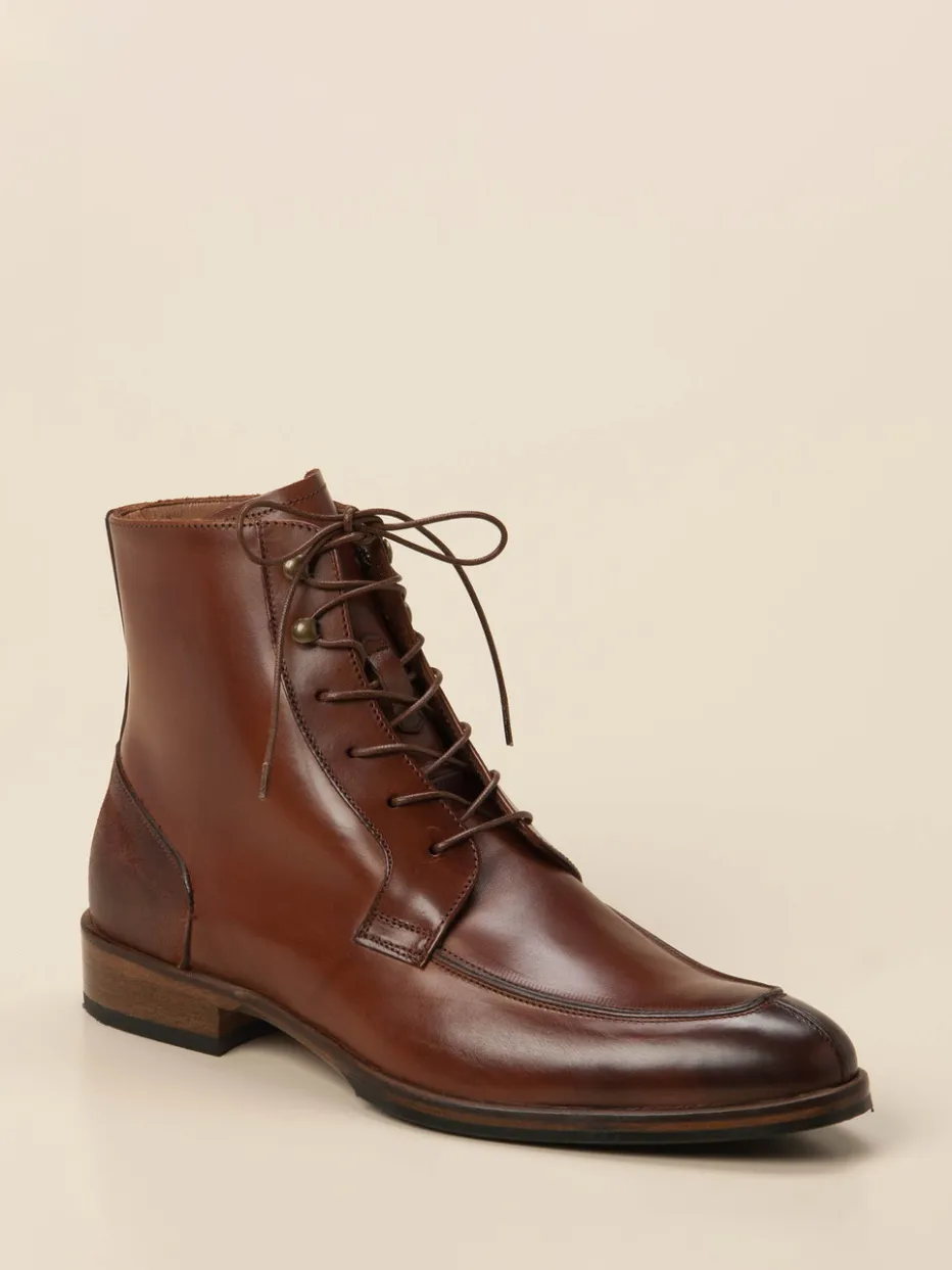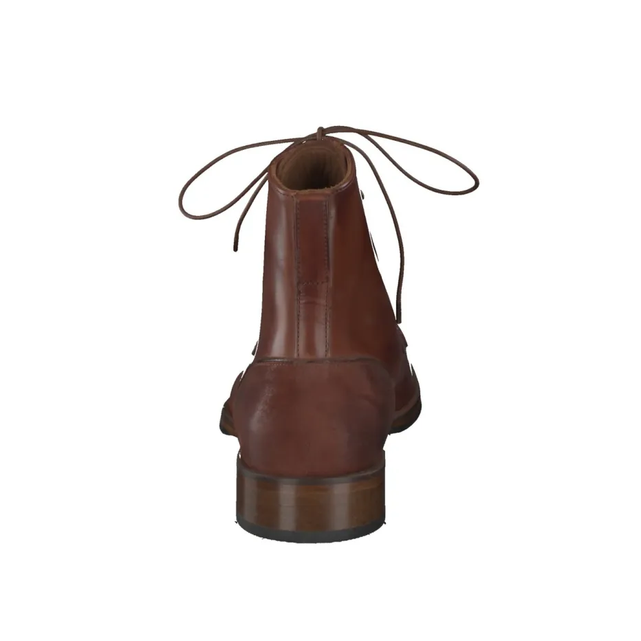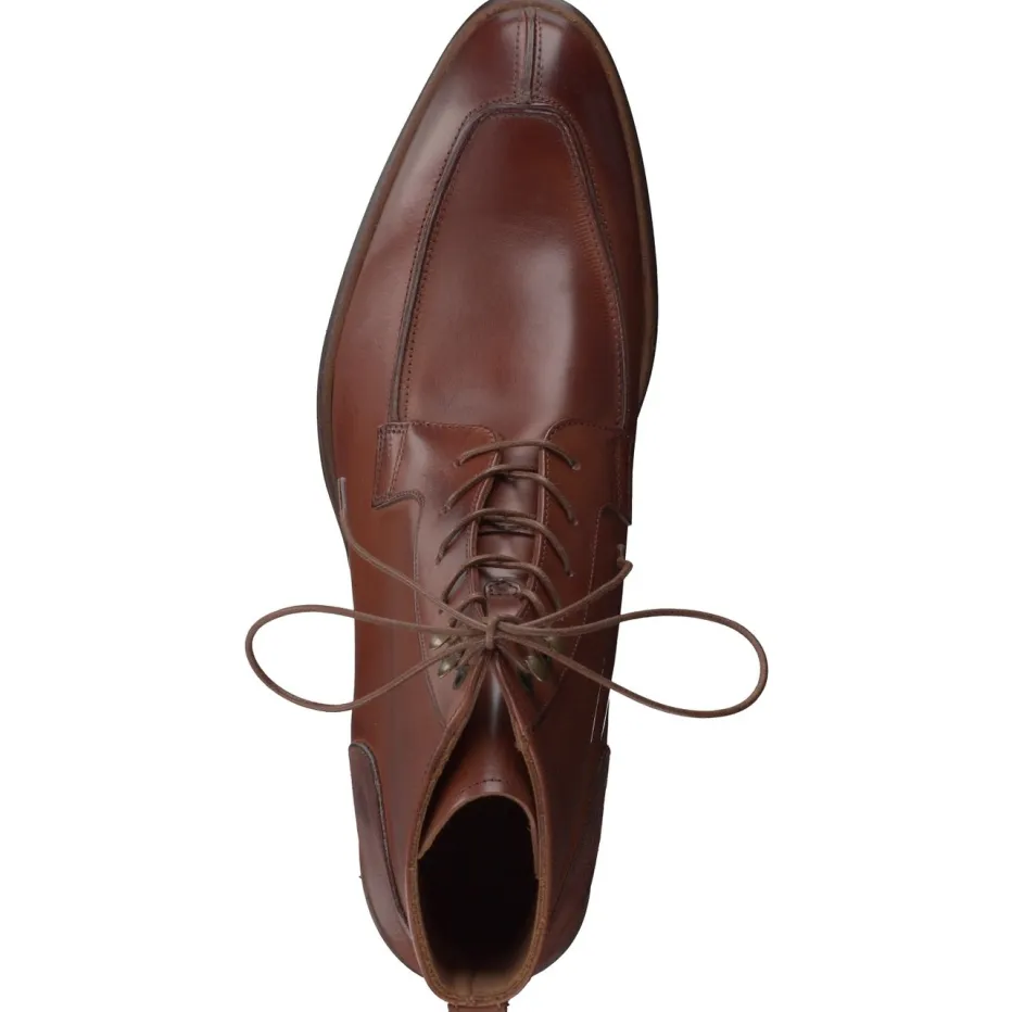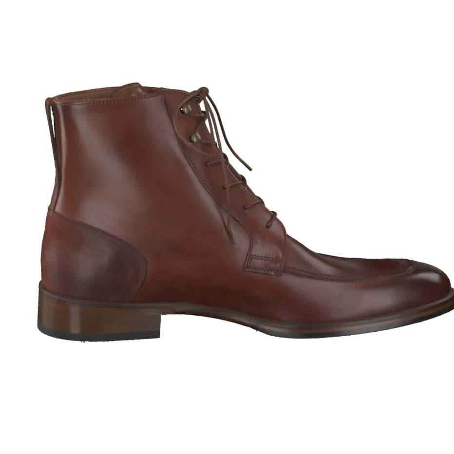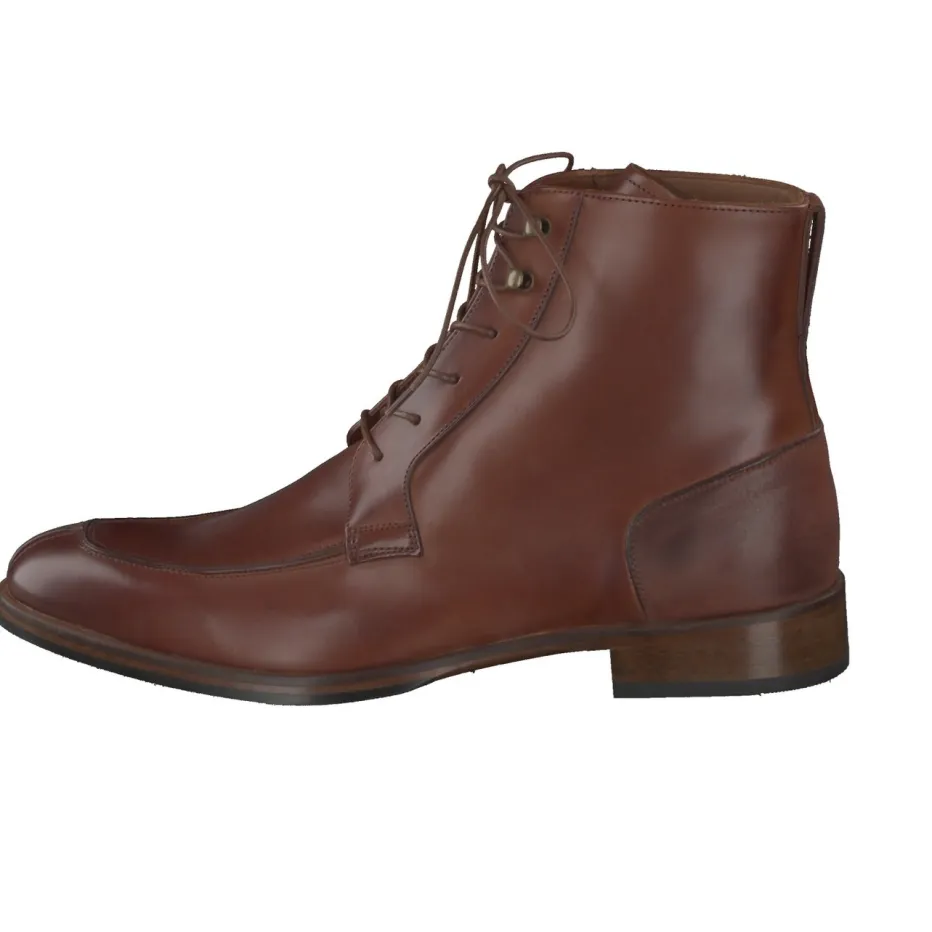 Diese Herren-Stiefelette überzeugt mit cognacfarbenem Kalbleder, klassisch-schlanker Form und dezenten Kontrastdetails – ideal für stilvolle Office- oder Abend-Outfits.