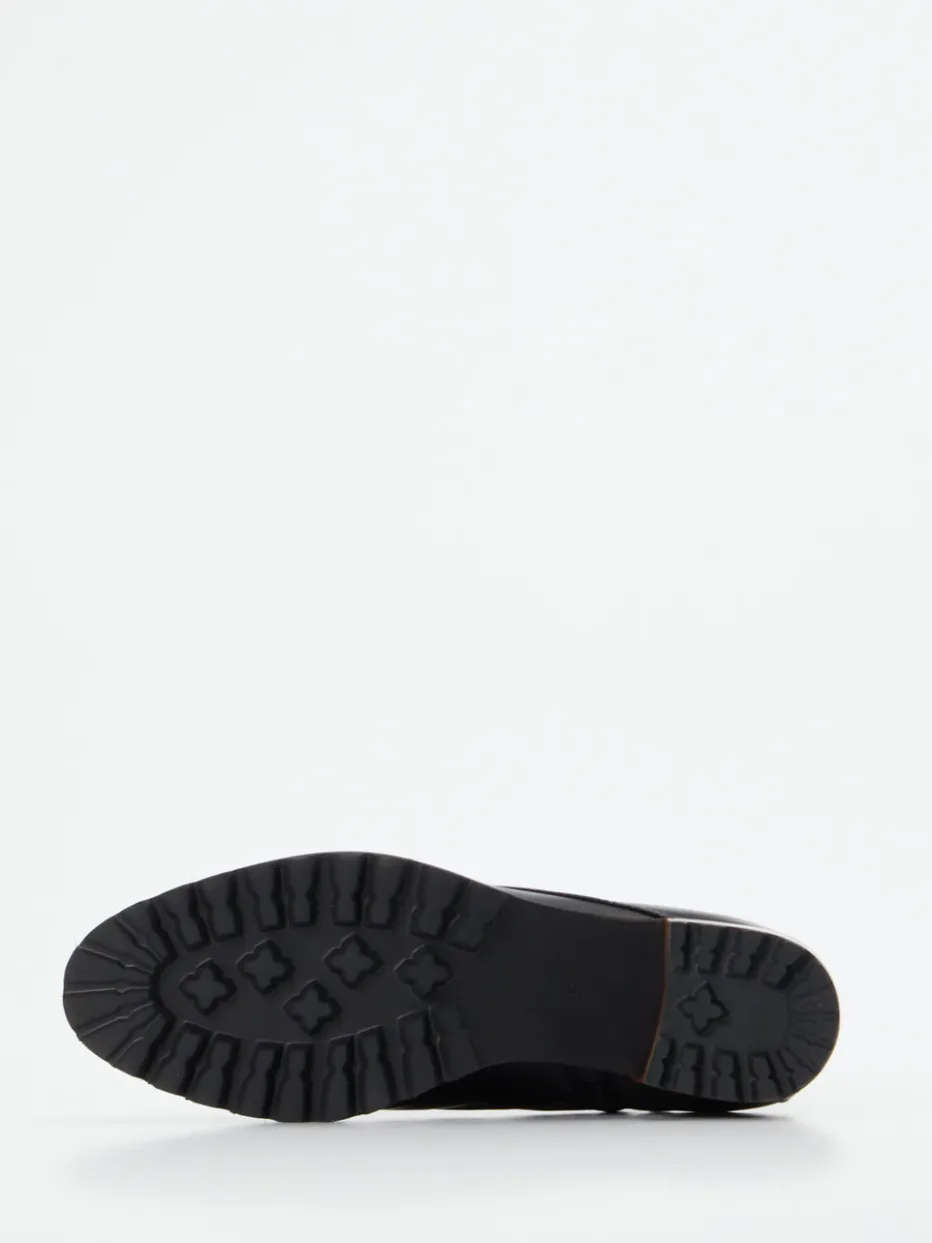 Ideal für herbstliche City-Looks: Das butterweiche Leder zeigt sich leicht glänzend und schmiegt sich an den schmal geschnittenen Leisten. Ein seitlicher Reißverschluss ergänzt die filigrane Schnürung für schnelles Anziehen. Die markante Gummisohle mit Kreuzprofil verleiht Trittsicherheit, während das atmungsaktive Futter innen für angenehmen Komfort sorgt. Minimalistische Formgebung und ein Blockabsatz in Holzoptik runden den Look ab. Lässt sich vielseitig zu Wollmantel oder Hosenanzug kombinieren.