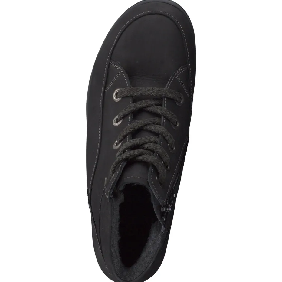 Schwarz, weich und wetterfest.Finn Comfort präsentiert eine Damen-Schnürstiefelette für den Alltag und leichte Outdoor-Aktivitäten. Kaltes Wetter erfordert warmes Schuhwerk: Diese knöchelhohe Stiefelette in sattem Schwarz vereint robustes Nubukleder mit samtiger Oberfläche und weich gepolstertem Schaftrand. Das wohlig-wollene Innenfutter schützt vor Kälte, eine profilierte Gummisohle sorgt für Trittsicherheit. Die Kombination aus Schnürung und seitlichem Reißverschluss ermöglicht müheloses An- und Ausziehen. Kontrastnähte und Metallösen verleihen dem funktionalen Design dezente Akzente. Der Schuh passt zur Thermo-Leggings wie zur Softshelljacke. Komfort made by Finn Comfort – mit herausnehmbarem Fußbett und bequemer Weite K.