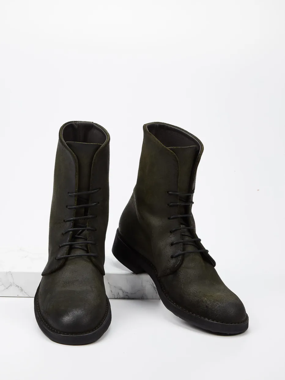 – Schnürstiefelette aus Veloursleder in Oliv*Pantanetti Outlet
