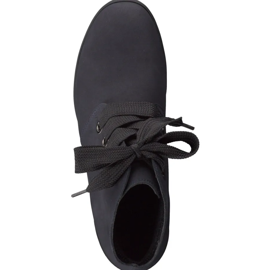 Diese dunkelblauen Schnürstiefeletten von Hartjes überzeugen durch komfortables Nubukleder, eine ergonomische Weite H und alltagstaugliche Designdetails.