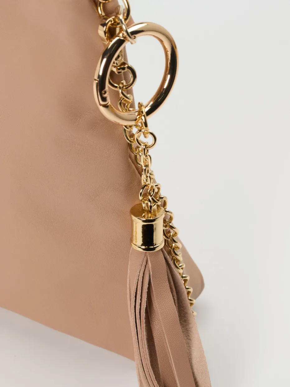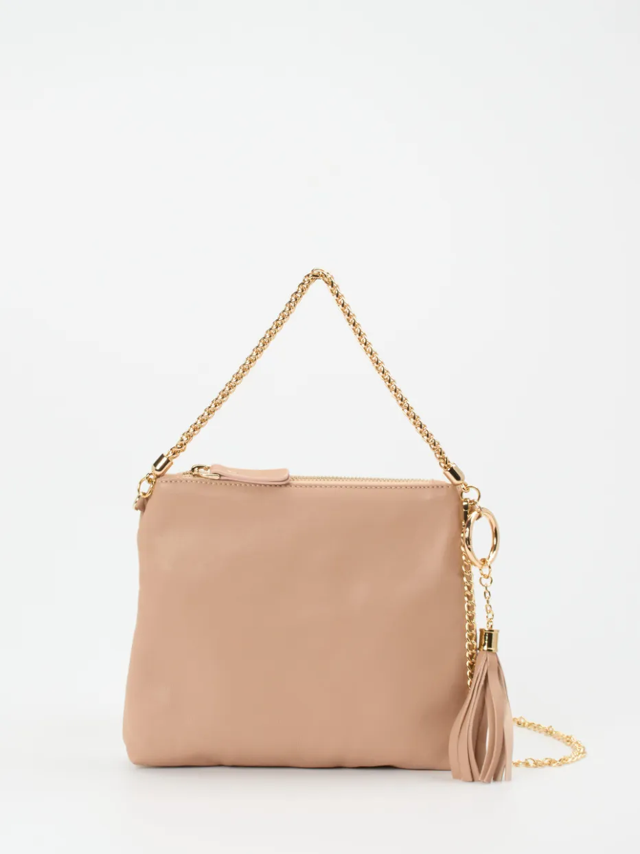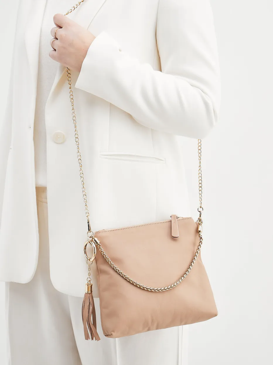 Die Kombination aus softem Lammleder, goldfarbenem Kettenriemen und puristischer Silhouette setzt dezente Luxusakzente mit hohem Stilbewusstsein.