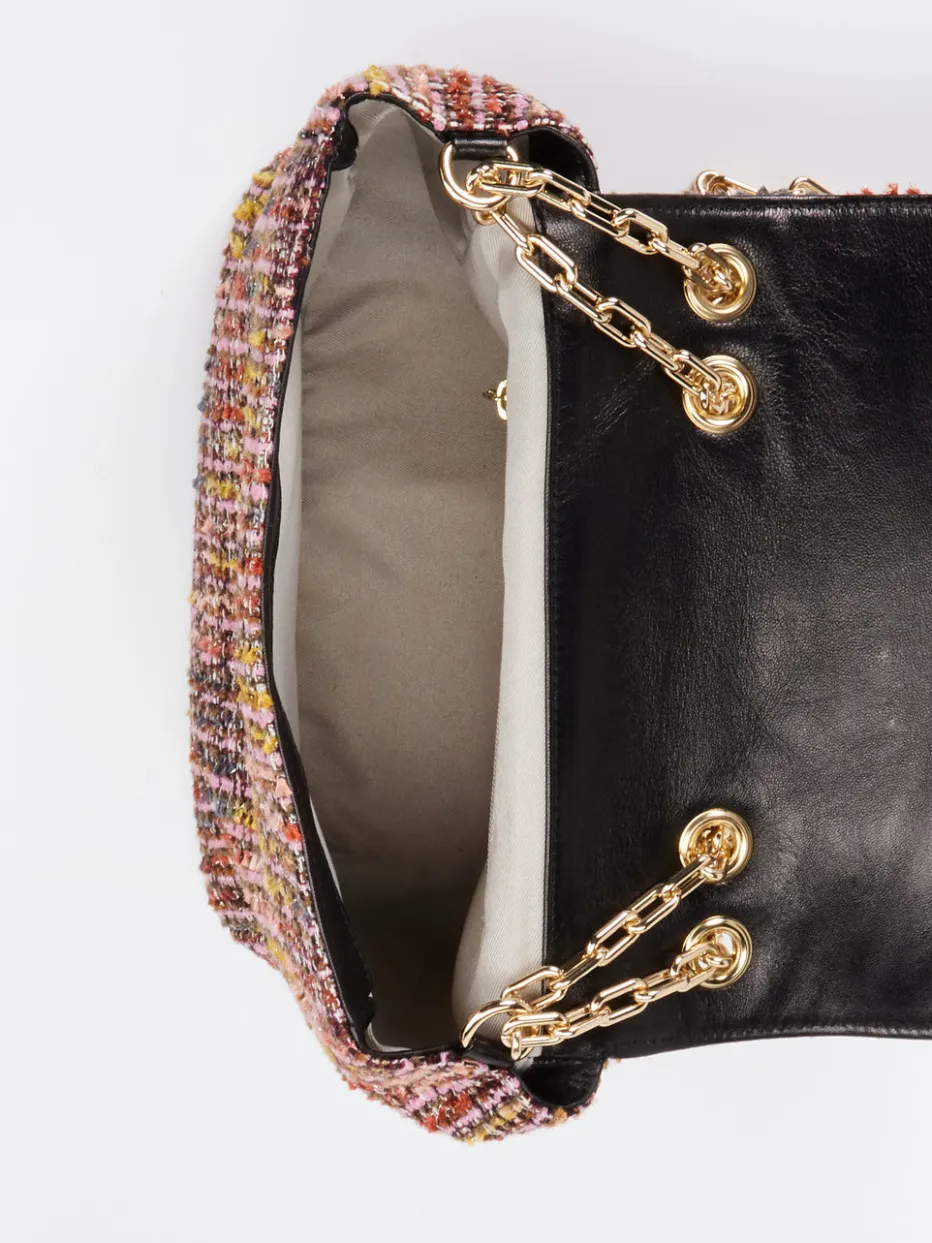 Diese raffinierte Chain Bag kombiniert strukturreichen Bouclé-Stoff mit eleganter Strassverzierung. Ideal für einen stilvollen Auftritt zwischen Vintage-Flair und modernem Quiet-Luxury-Trend.