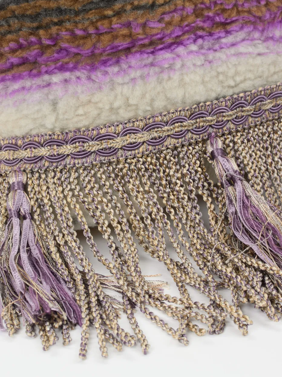 Diese Schultertasche von Konstantin Starke interpretiert den Boho-Trend mit weicher Textur, gestreiftem Muster und kunstvoll gearbeiteten Details wie Fransen und goldfarbener Hardware auf moderne Weise.