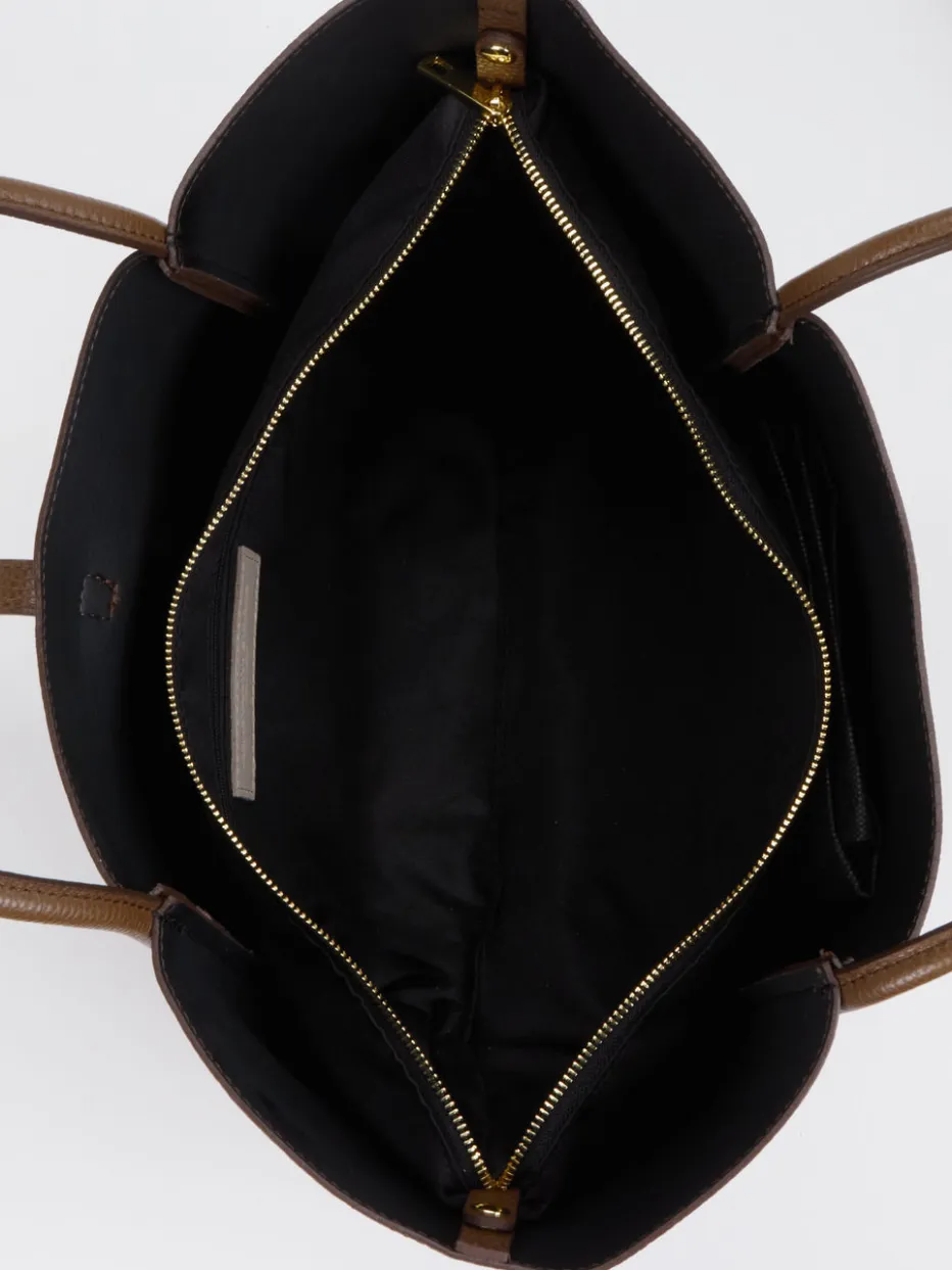 – Material: Kalbleder- Farbe: Braun- Maße: ca. 30 x 45 x 10 cm (HxBxT) – Innenausstattung: eine herausnehmbare Einhängetasche mit Reißverschluss