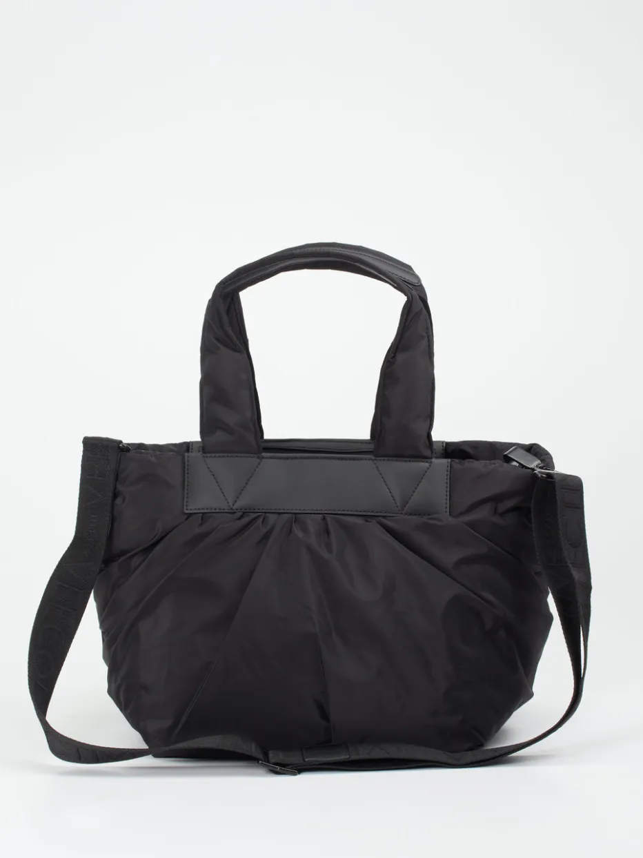 Der Shopper aus recyceltem Nylon verbindet leichtes Design mit praktischer Detailverliebtheit – ideal für urbane Tagesroutinen mit Stilanspruch.