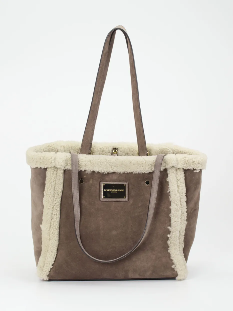 Der großzügige Shopper kombiniert weich angerautes Textil mit wintertauglicher Teddy-Optik – ein stilvoller Begleiter für kühle Tage.