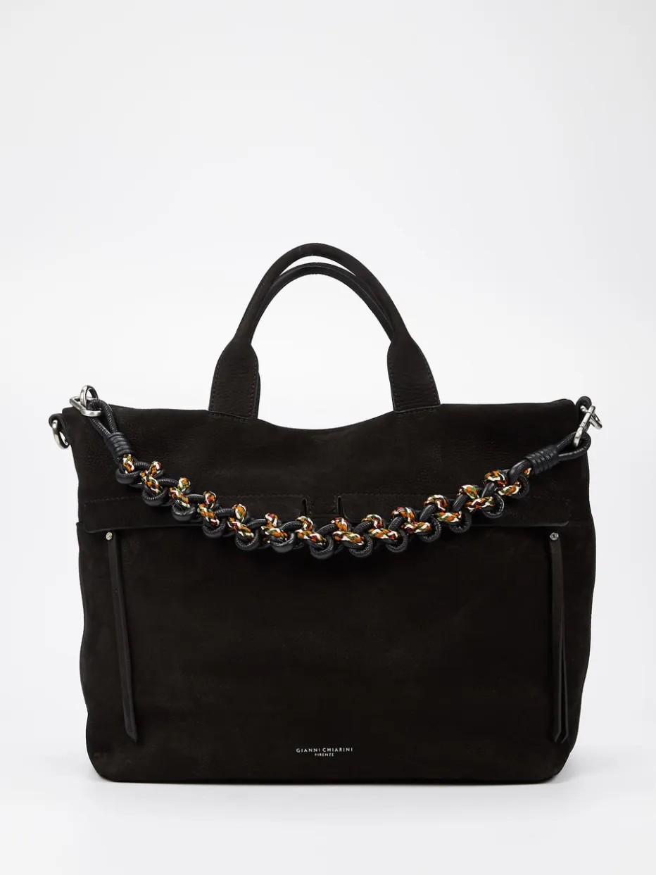 Schwarzes Nubukleder und eine kontrastreiche Kordel machen diese Tasche von Gianni Chiarini zum stilvollen Statement für Alltag und Büro.