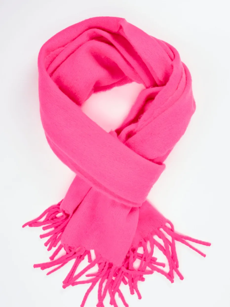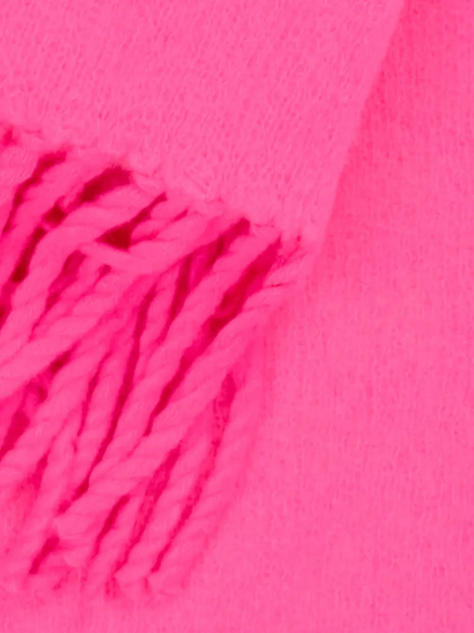 Mit leuchtendem Neonpink und luxuriösem Kaschmir setzt dieser Fransenschal ein kraftvolles modisches Statement – weich, voluminös und vielseitig tragbar.