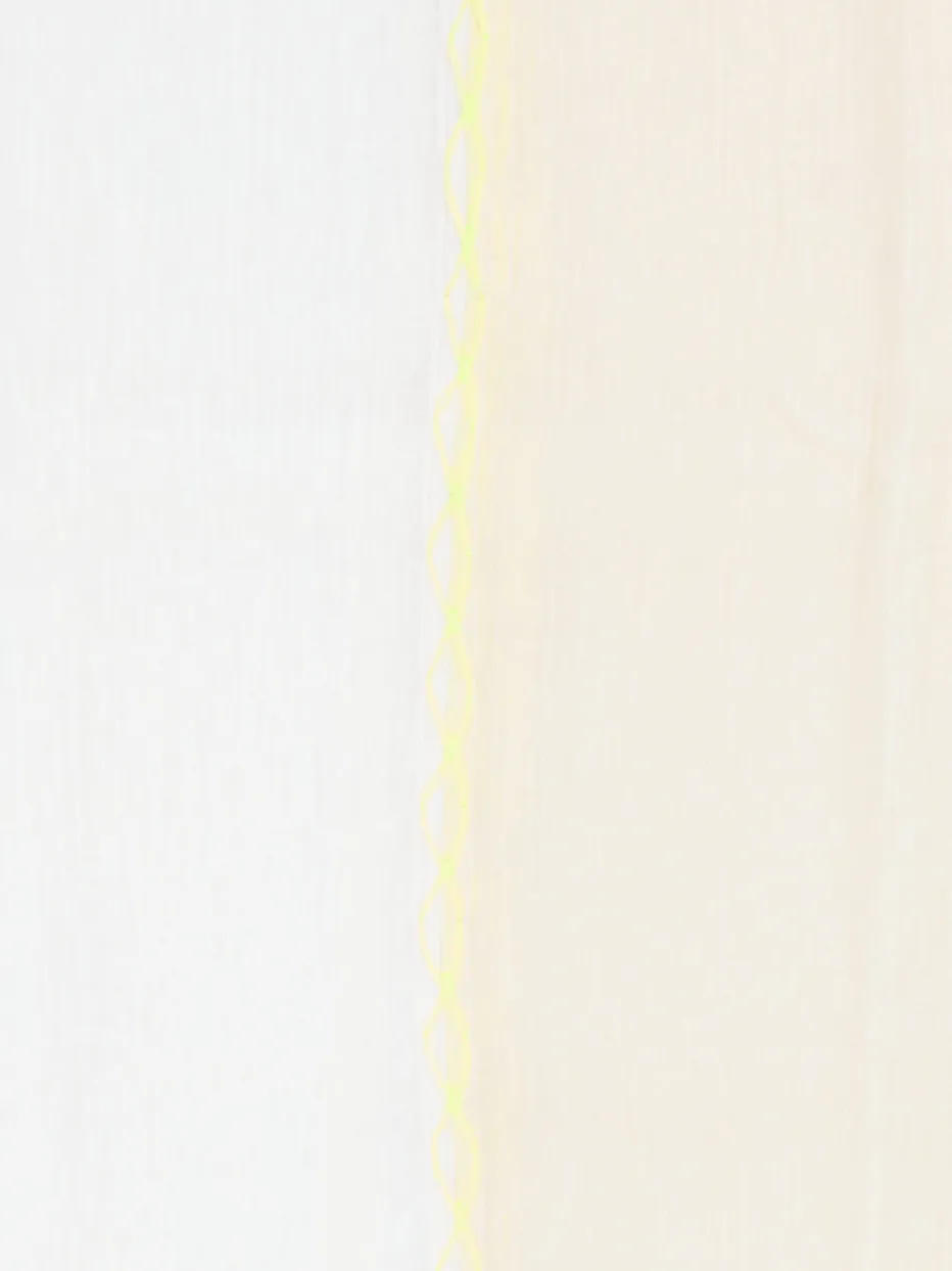 Ein luxuriös-leichter Kaschmirschal mit feiner Transparenz, der durch eine neonfarbene Kontrastnaht stilvolle Akzente im Sommerlook setzt.