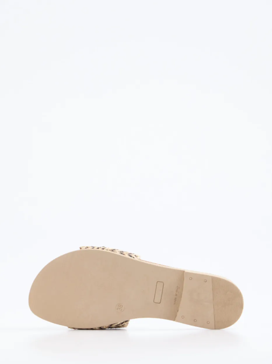 Mit fein geflochtenem Bast und edlem Kalbleder verbindet diese Pantolette hochwertige Materialien mit einem stilvollen Sommer-Look.