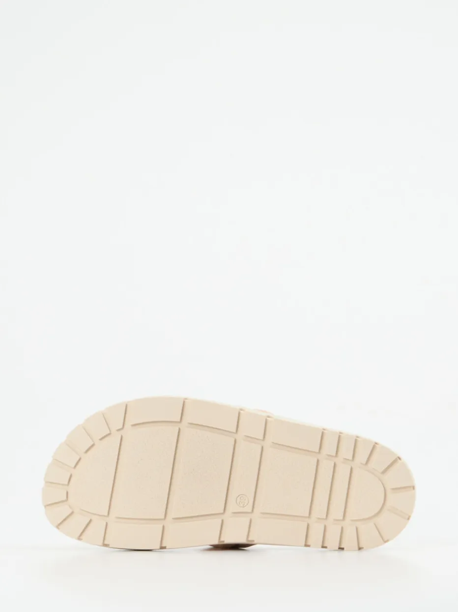Schlichte Eleganz, neu interpretiert.Konstantin Starke präsentiert eine Pantolette der Kategorie Slides, die Komfort und Stil auf dezente Weise vereint. Ideal für entspannte Sommertage im Freien oder Zuhause bietet diese offene Damen-Sandale eine durchdachte Mischung aus hochwertigem Kalbleder und weich gepolsterten, gekreuzten Riemen im soften Rosébeige. Das ergonomisch geformte Fußbett und das rosafarbene Innenfutter in Lederoptik sorgen für ein angenehmes Tragegefühl. Dank der profilierten Gummisohle und der leicht erhöhten Ausführung überzeugt das Modell auch in funktionaler Hinsicht. Inspiriert vom Quiet-Luxury-Trend, lässt sich das designstarke Modell ideal zu Leinen oder fließenden Stoffen kombinieren. Echtes Komfortdesign von Konstantin Starke mit zurückhaltender Raffinesse.