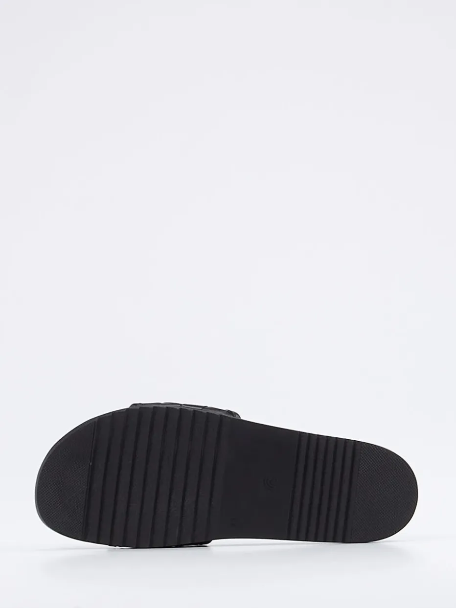Ideal für entspanntes Flanieren oder den Alltag zu Hause – das schwarze Lammleder zeigt sich samtig verarbeitet in dezenter Flechtoptik. Die flache Silhouette ohne Verschluss unterstreicht den modernen Streetwear-Einfluss. Für Komfort sorgen die weich gepolsterte Innensohle und die strukturierte Gummilaufsohle. Der Ton-in-Ton-Look unterstützt die klare, reduzierte Ausstrahlung und ist ein stilistisches Statement zu „Quiet Luxury“. Perfekt kombinierbar mit Leinen-Shorts oder monochromen Casual-Looks.