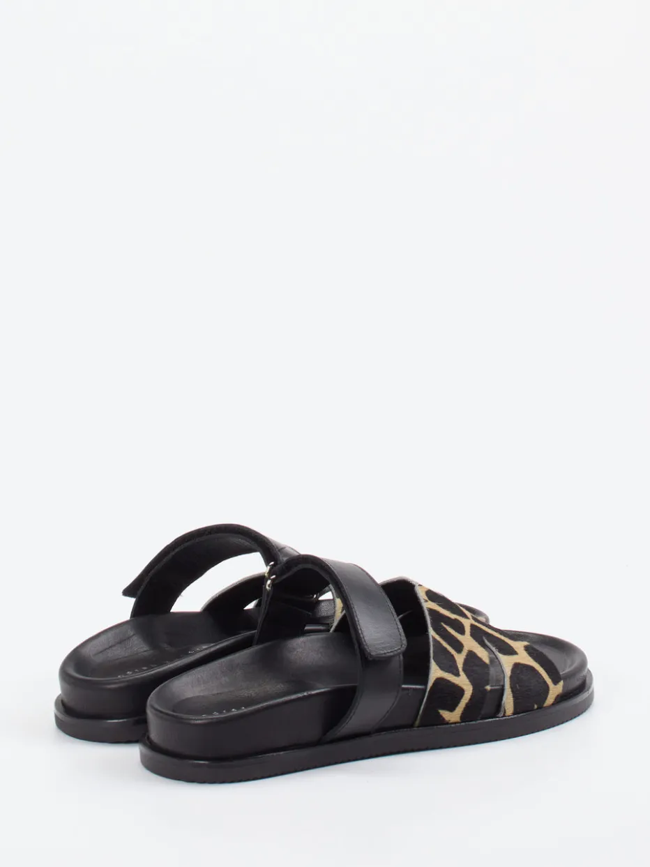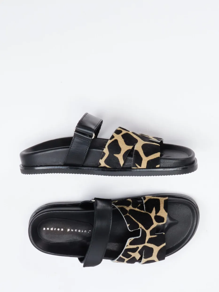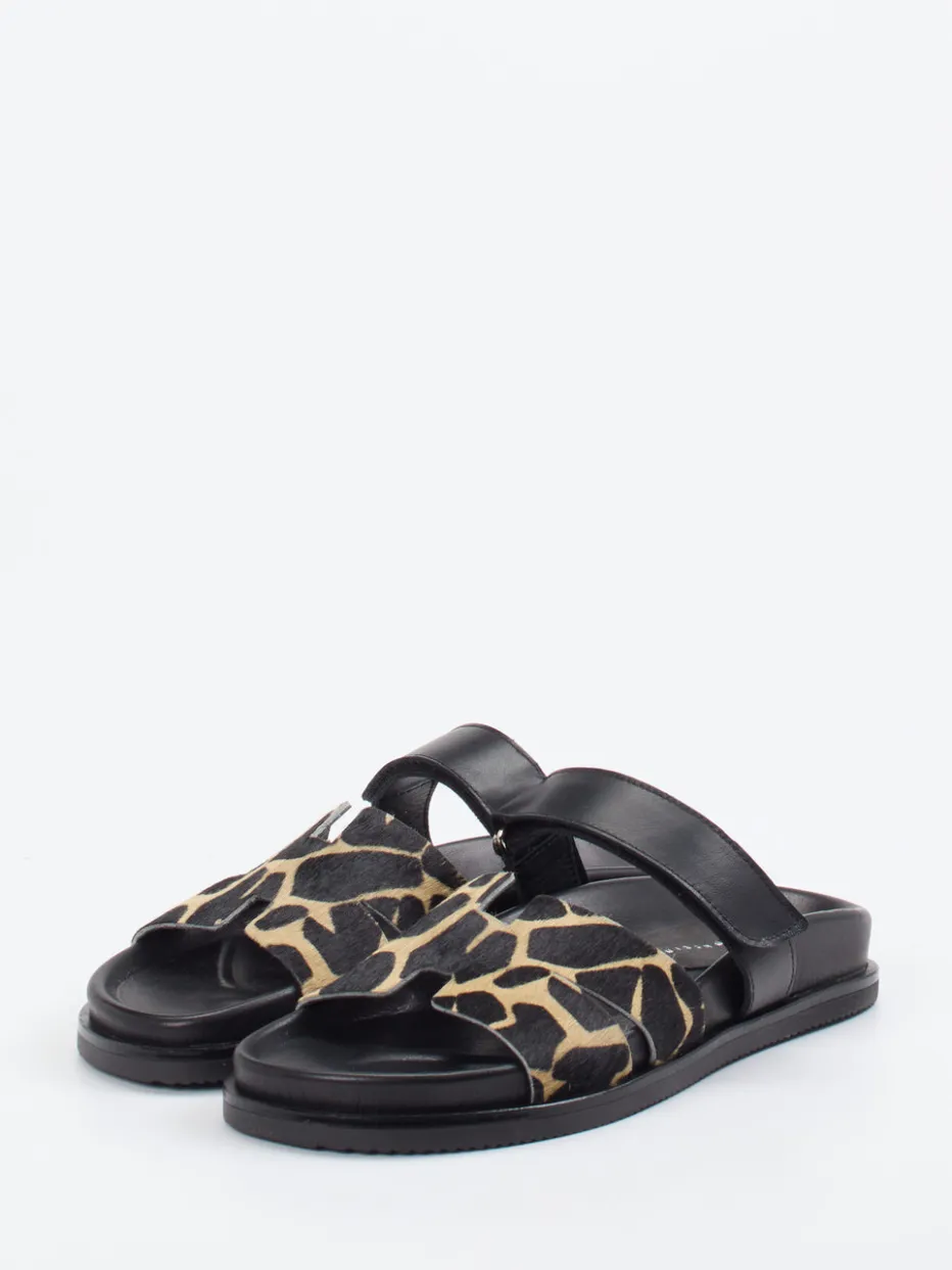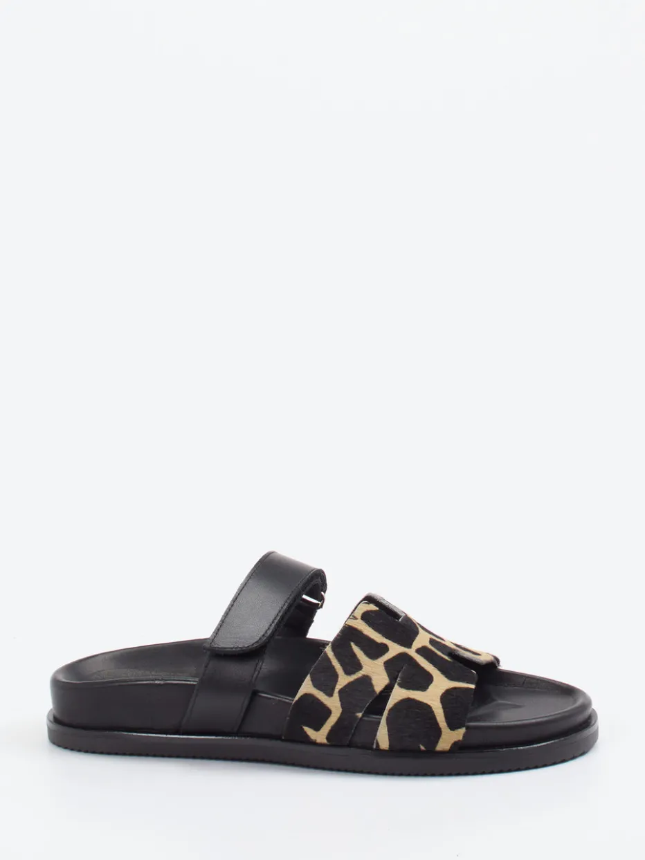 Diese modischen Slides verbinden edles Lammleder mit echtem Kalbsleder in Felloptik – ein stilvolles Highlight für sommerliche Streetwear-Looks.