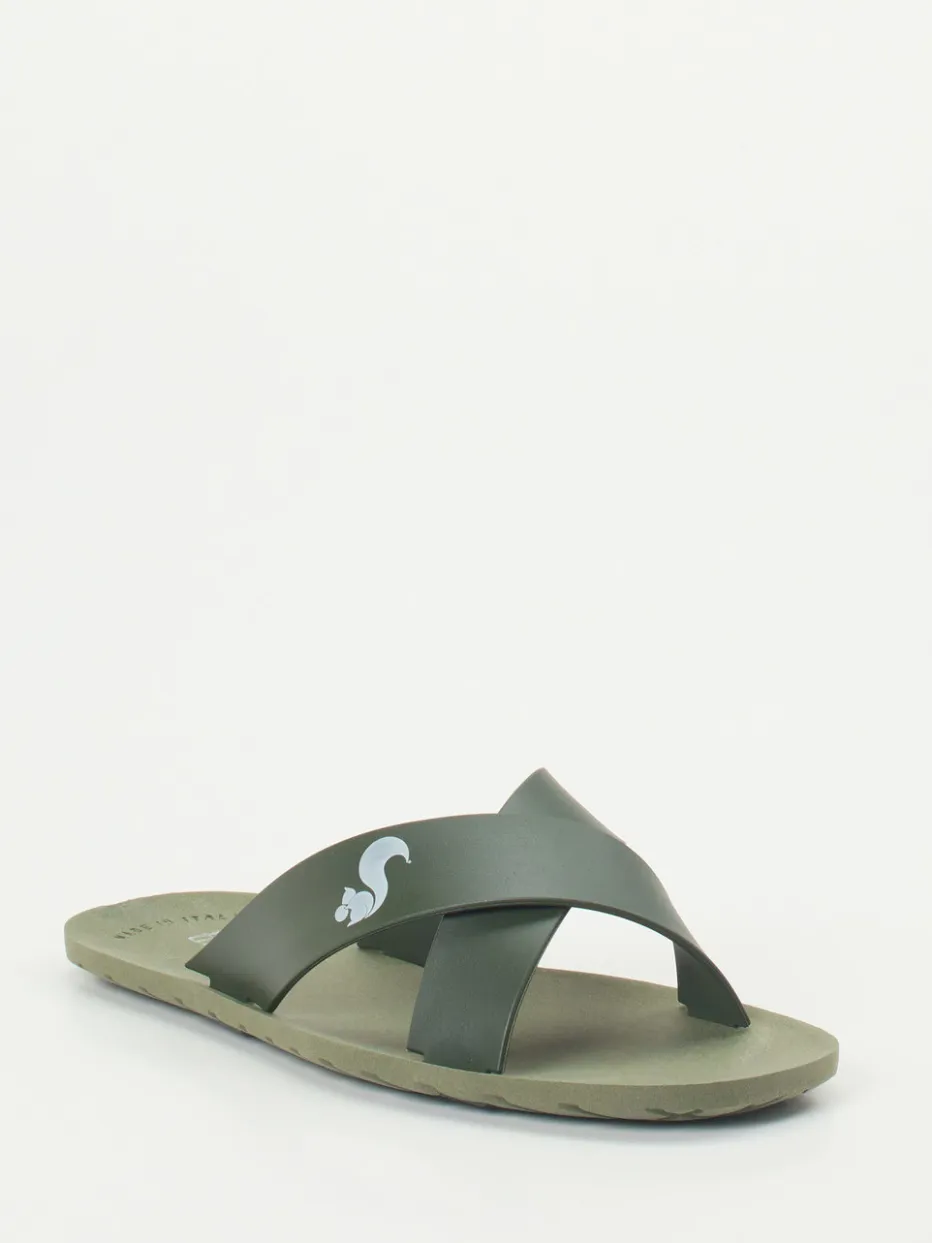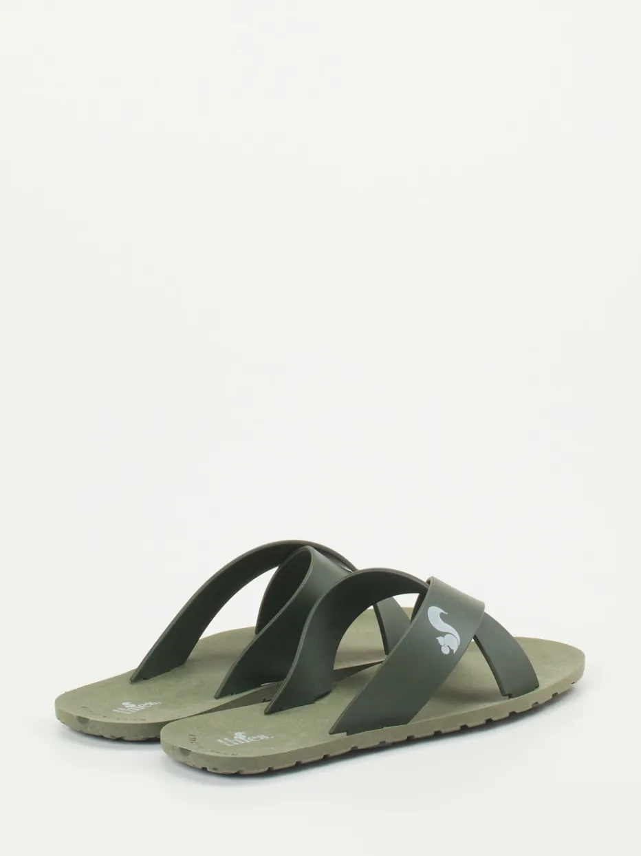 Dank der flachen, ergonomisch geformten Gummisohle und dem überkreuzten Riemen aus mattem, grünem Synthetikmaterial bietet dieses Modell eine gelungene Mischung aus Komfort und Stil. Der weiß gedruckte Logo-Schriftzug setzt auf dem Kreuzriemen einen dezenten Markenakzent. Wasserresistenz und rutschhemmende Profilierung machen die Slides zu einem verlässlichen Sommerbegleiter – ob am Pool, in der City oder am Meer. Besonders trendaffin durch die Verbindung aus Quiet Luxury und Utility-Footwear.