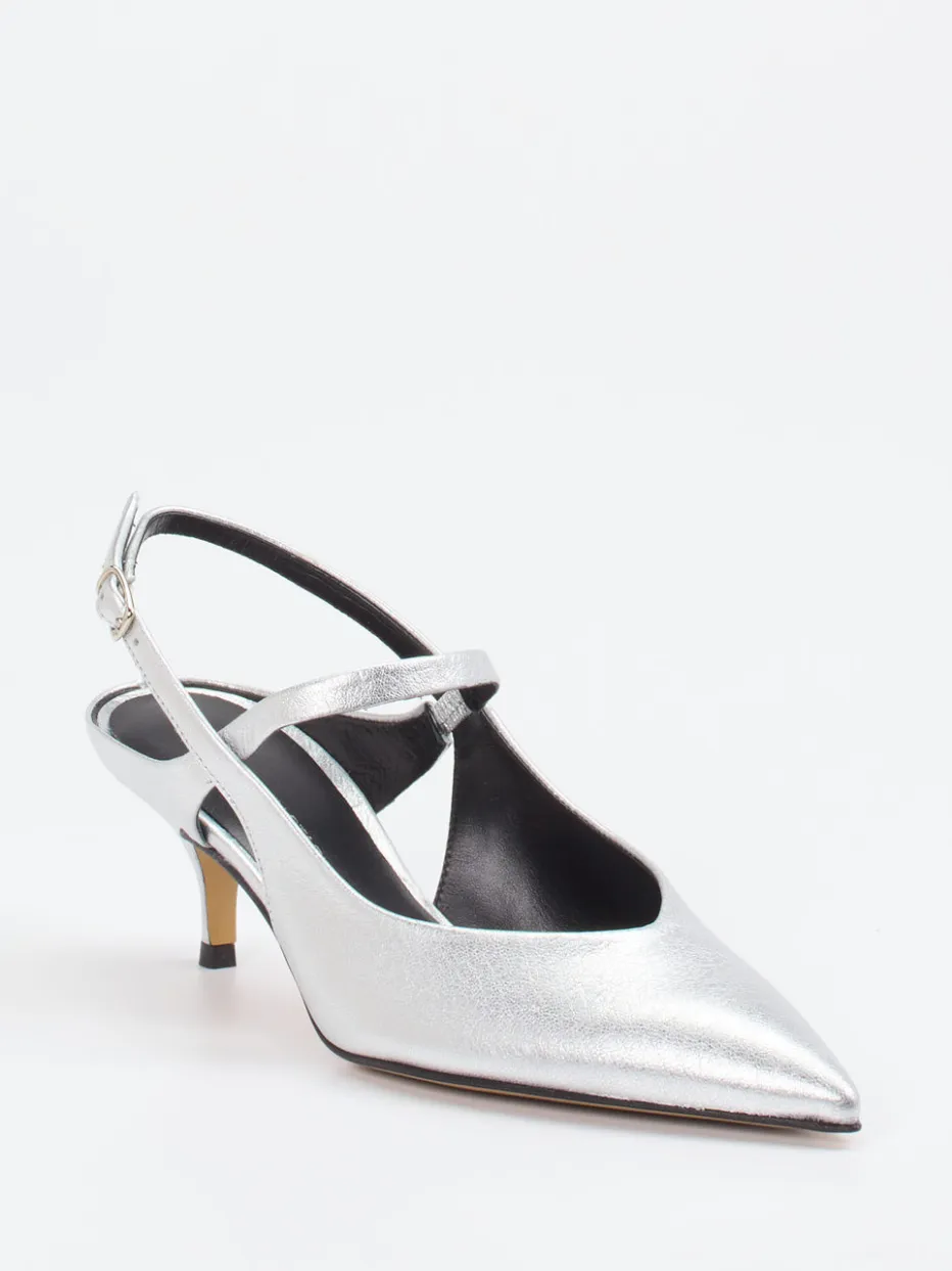 Diese Slingback-Pumps verbinden minimalistisches Design mit dem Glanz aktueller Metallic-Trends. Der Kitten Heel verleiht einen stilvollen Vintage-Touch und sorgt für femininen Chic.