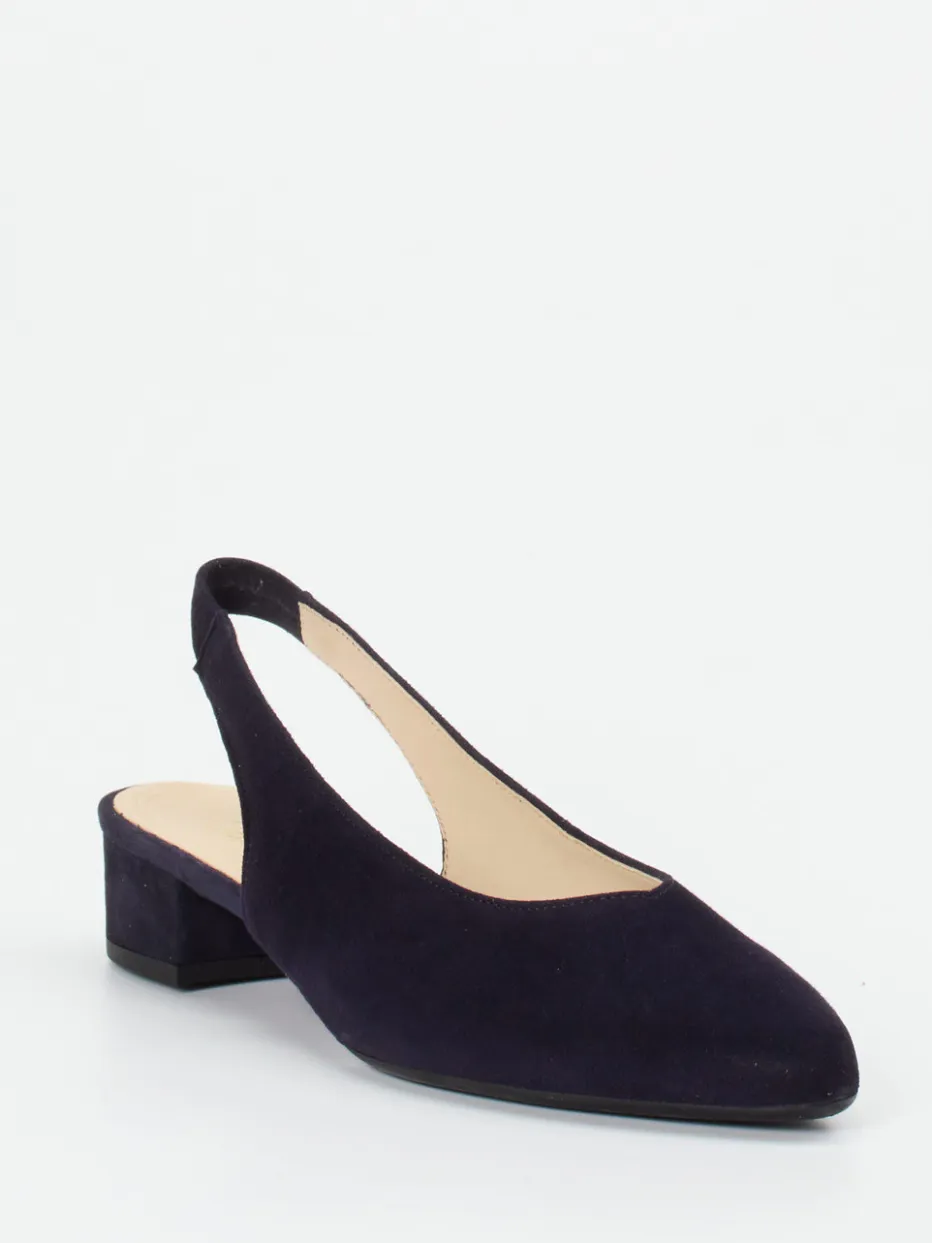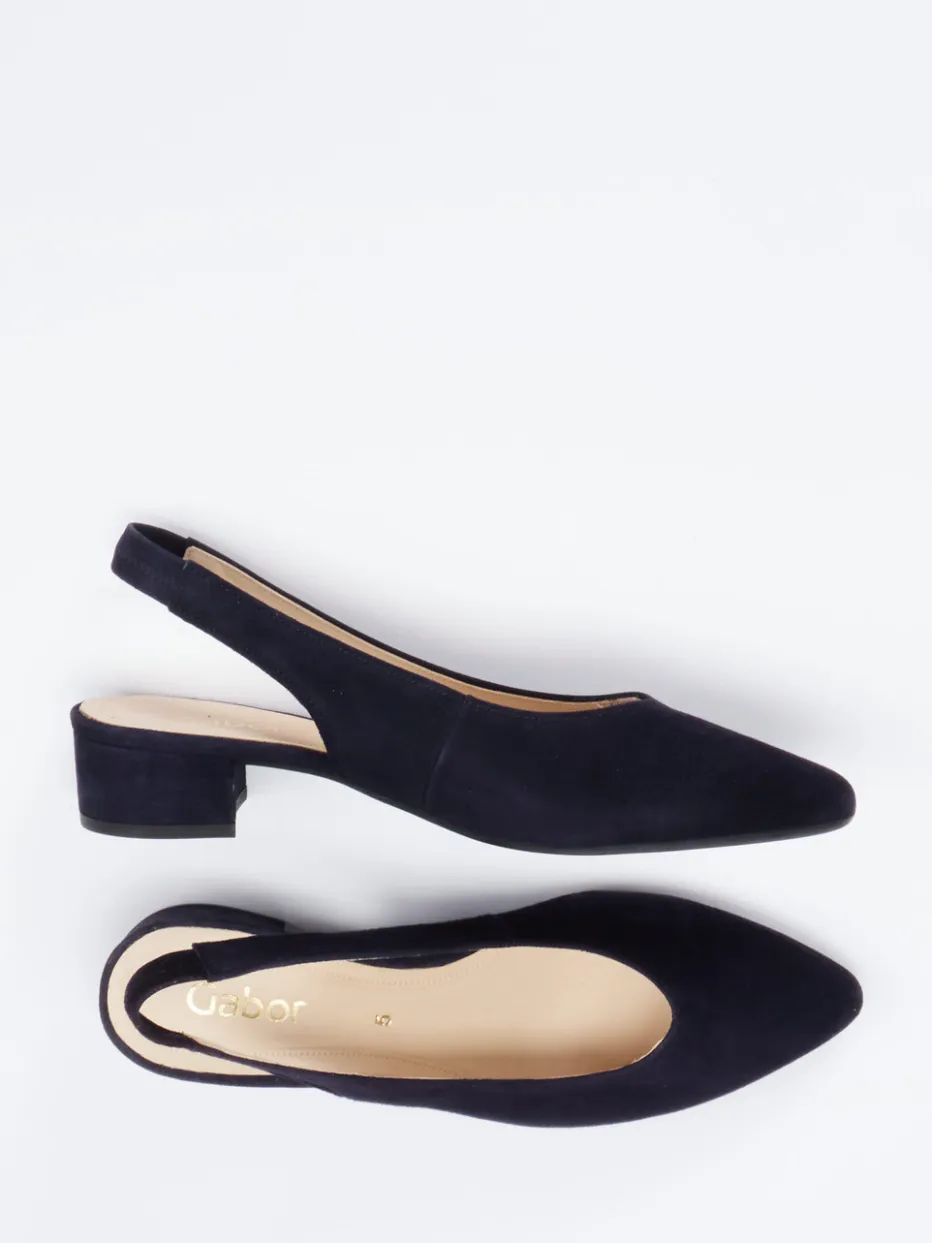 Diese Gabor Slingpumps kombinieren samtweiches Veloursleder mit klarer Silhouette und bieten dank elastischem Riemen und Blockabsatz hohen Komfort im Alltag.