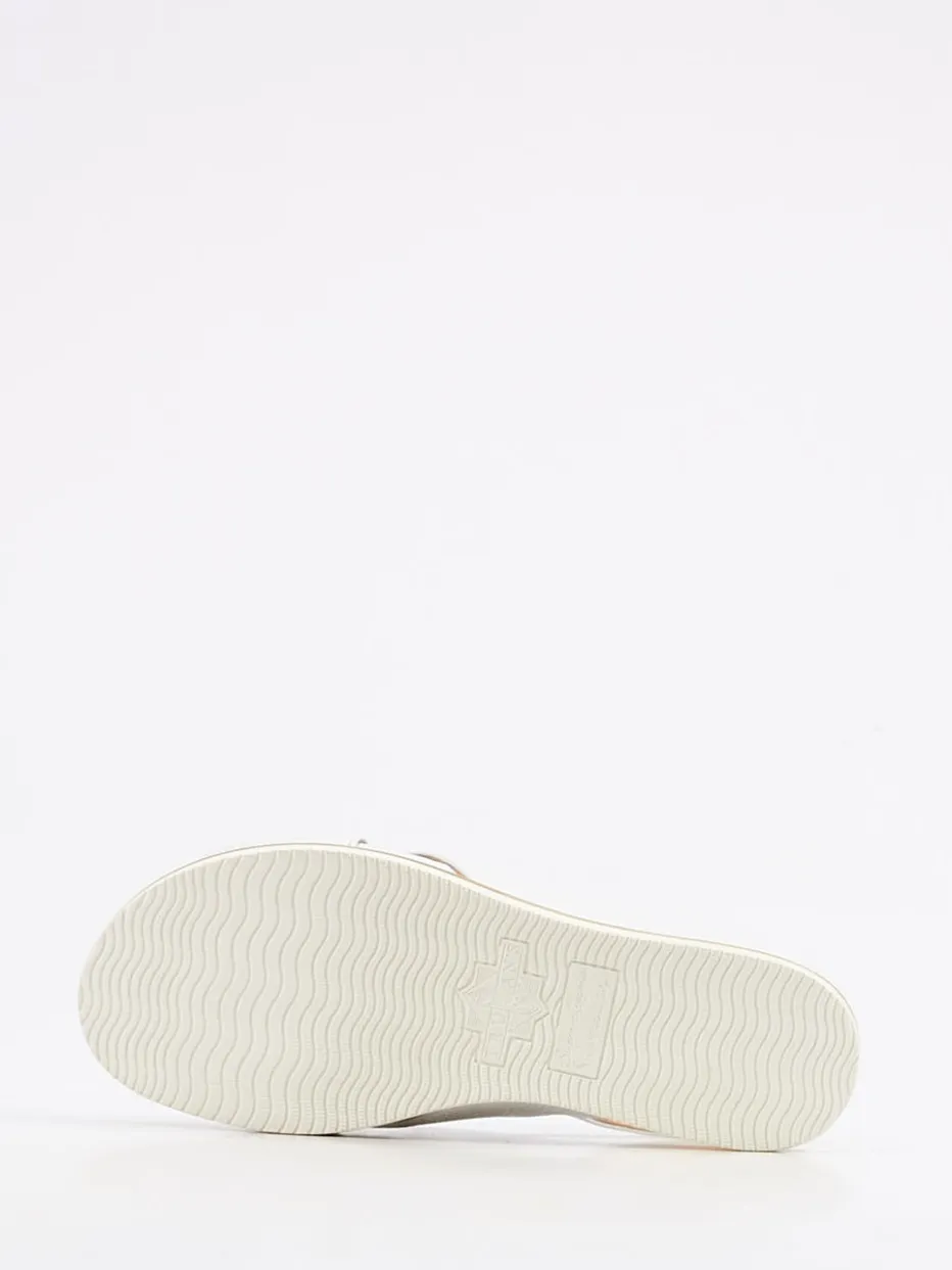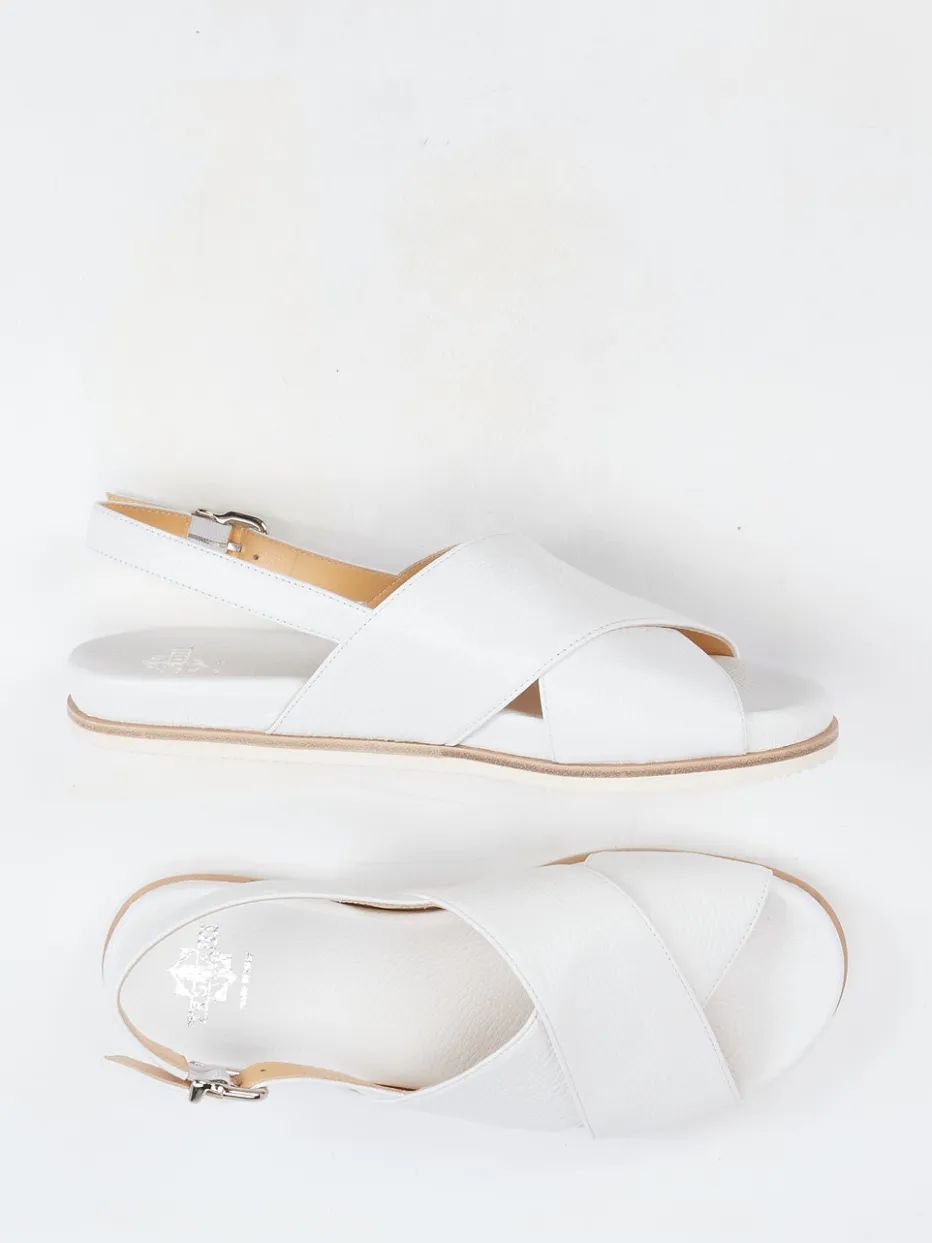 Ein zeitloser Begleiter an warmen Sommertagen ist diese Sandale aus dem Hause Truman´s. Anspruchsvoll und wertig zeigt sich das weiße, weiche Hirschleder. Die gekreuzten Riemchen garantieren eine ideale Passform und einen angenehmen Halt. Durch die silberfarbene Schließe lässt sich das Fersenriemchen individuell anpassen. Das gepolsterte Tieffußbett und die bequeme Gummisohle unterstreichen den hohen Tragekomfort.