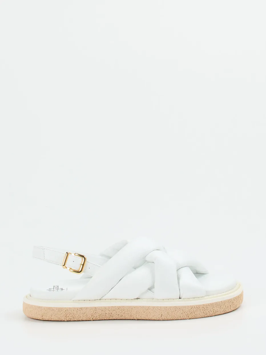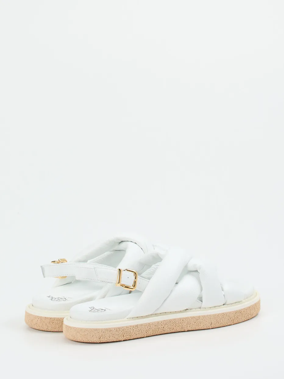 Understatement in Weiß.Truman’s präsentiert minimalistische Slingback-Sandalen für Damen. Die weiße Hirschledersandale mit genarbter Oberfläche bietet dank der gepolsterten Kreuzriemen und des weichen Lederfußbetts angenehmen Tragekomfort – ideal bei warmem Wetter oder auf Reisen. Ihre offene, flache Form, goldfarbene Metallschnalle und die helle Leichtzellsohle spiegeln den aktuellen „Quiet Luxury“-Trend wider. Die klare Linienführung betont den hochwertigen Look und passt besonders gut zum zeitlosen Sommerstil. Handwerkskunst aus Italien trifft auf dezente Eleganz – ein Komfort-Statement für anspruchsvolle Looks.