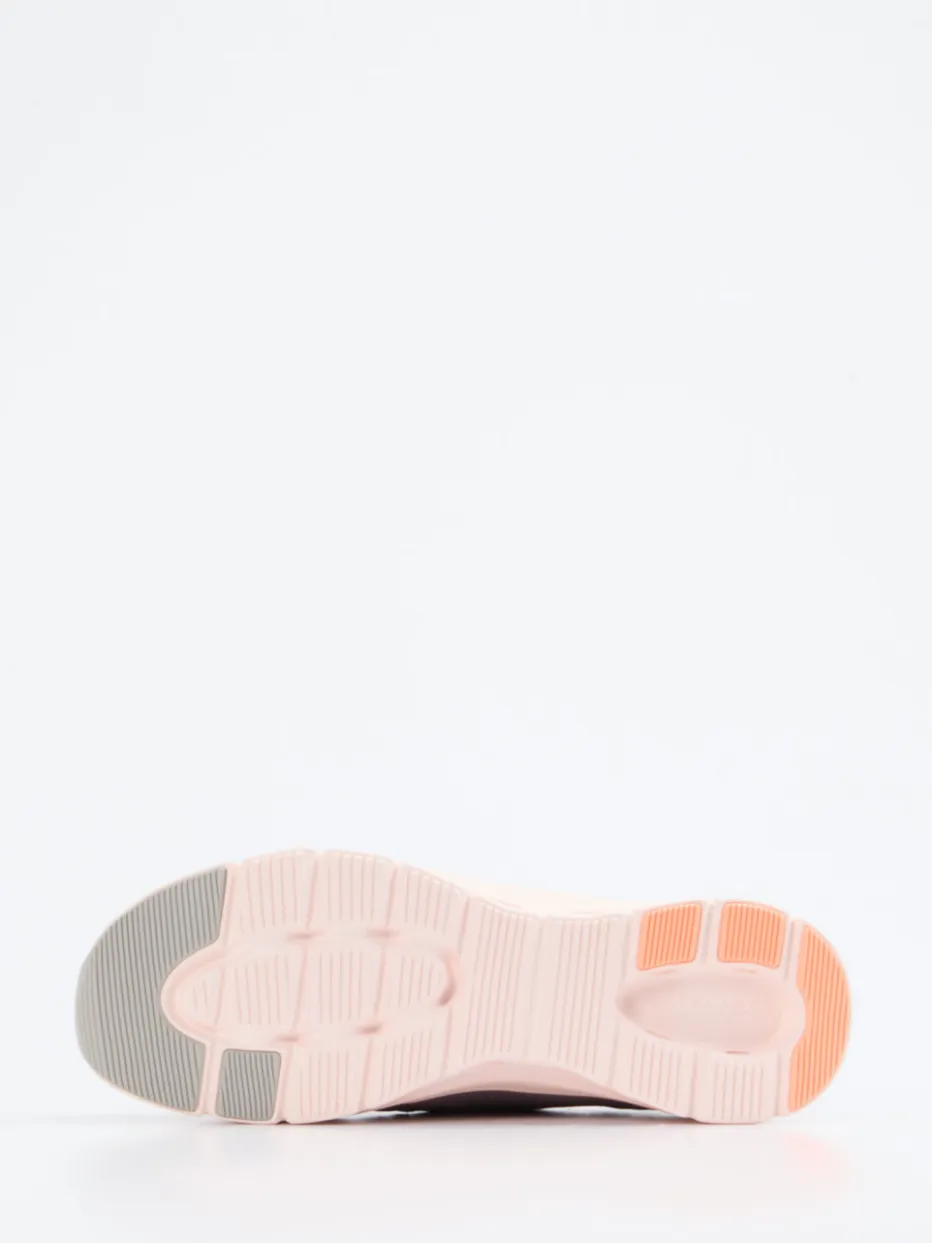 Sportlich durch den Alltag.Skechers präsentiert einen komfortbetonten Slip-in-Sneaker für Damen. Ob beim Stadtbummel oder nach dem Workout – dieser Sneaker punktet mit flexibler Passform, atmungsaktivem Mesh und einer elastischen Fersenkappe. Das strukturierte Textil trifft auf ein zartes Farbspiel aus Rosé-Beige, Apricot und Mittelgrau, ergänzt durch Ton-in-Ton-Logos und farblich abgesetzte Ösen. Die ausgeformte Glide-Step-Sohle aus Gummi sorgt für optimale Dämpfung und ein sportlich-dynamisches Laufgefühl. Streetwear-inspiriert fügt sich das Modell perfekt in Soft-Pastel- und Athleisure-Looks ein. Das Air-Cooled-Memory-Foam-Fußbett rundet den Tragekomfort markentypisch ab.