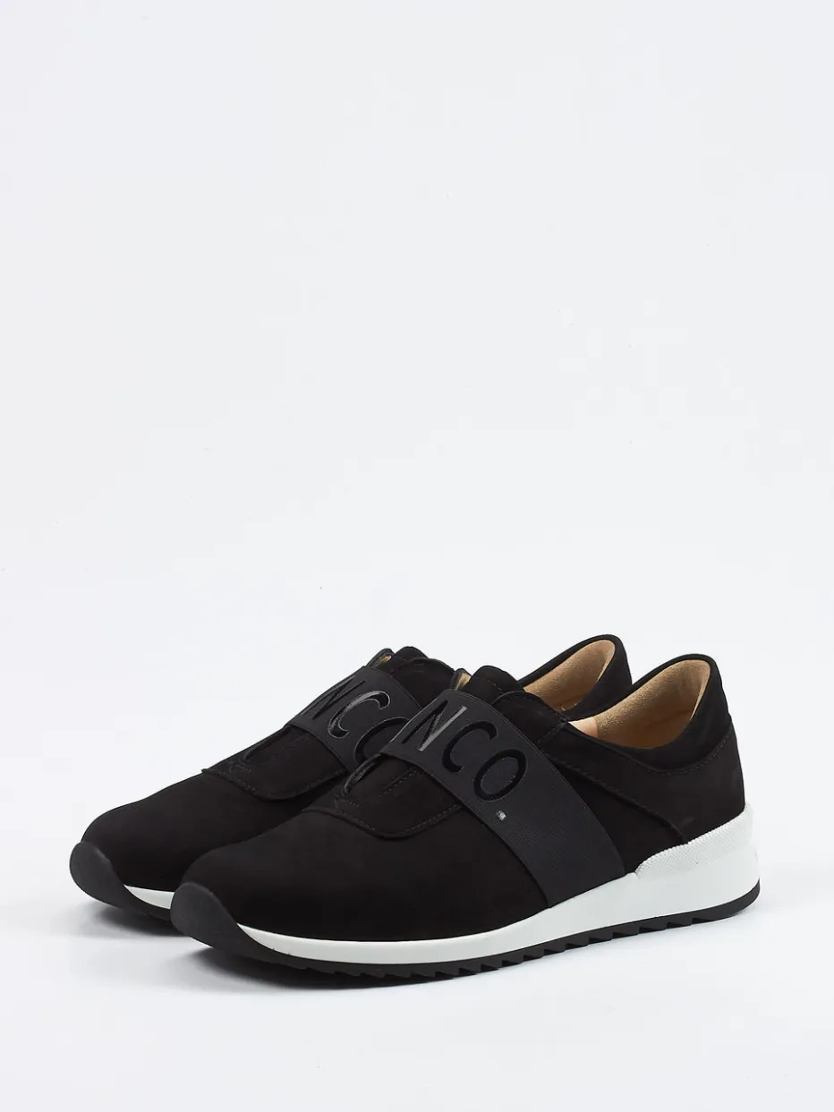 Ideal für müheloses An- und Ausziehen im Alltag bietet der Slipper mit ergonomischer Gummisohle und Wechselfußbett effektiven Komfort. Schwarzes, samtig angeschliffenes Nubukleder prägt die matt gehaltene Optik. Ein breiter Elastikriemen mit dezentem Logo-Schriftzug betont den sportiven Charakter und komplettiert die klassische Silhouette. Die gepolsterte Leder-Innensohle und das minimalistische Design mit zweifarbiger Laufsohle unterstreichen den aktuellen Comfort-Sneaker-Trend. Gut kombinierbar zu Softshelljacke oder Crossbody-Bag.