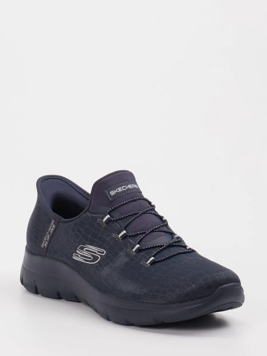 Das atmungsaktive Textilmaterial mit matter Oberfläche und Strukturmuster trägt sich angenehm leicht. Dunkelblaue Töne, reflektierende Elastikschnürung und eine klassisch niedrige Silhouette prägen das reduzierte Design. Eine flexible Gummisohle, gepolsterter Einstieg sowie Air-Cooled Memory Foam stehen für durchdachte Bequemlichkeit. Kombiniert mit sportiven Leggings oder im Athleisure-Style wirkt der Sneaker modern und unkompliziert. Ausgestattet mit herausnehmbarer Innensohle für individuelle Passform.
