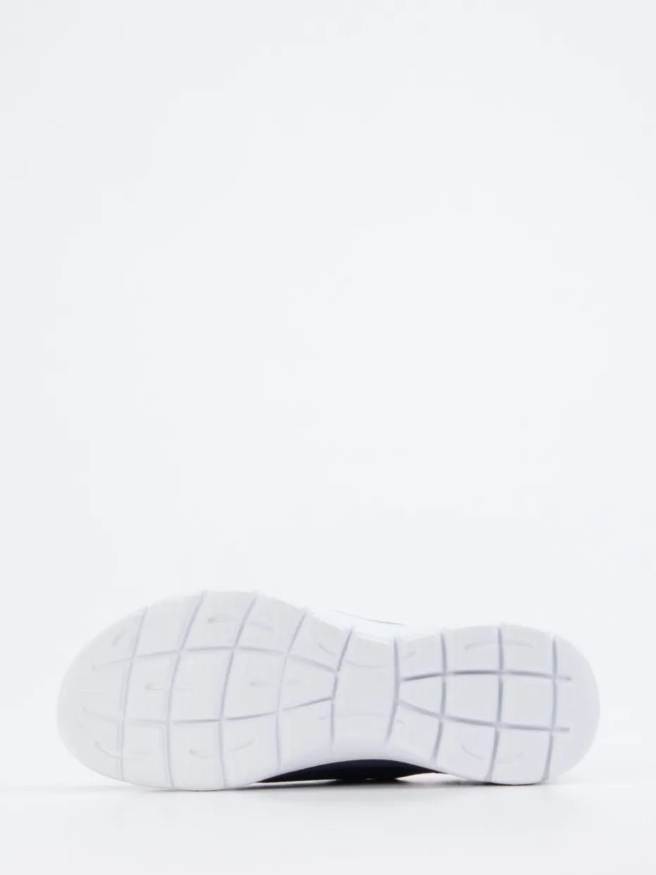 Ideal für Spaziergänge oder lockeres Fitnesstraining bietet das Modell dank strukturiertem Textil-Obermaterial mit Mesh-Anteilen eine hohe Atmungsaktivität. Die dunkelblaue Farbgrundlage wird durch rosa und weiße Akzente im elastischen Schnürsystem und den seitlichen Logo-Details stilvoll aufgelockert. Die flache Silhouette mit gepolstertem Einstieg sowie die rutschhemmende Gummisohle sorgen für ganztägigen Tragekomfort. Der Look passt zu sportlichen Leggings und urbanen Casual-Outfits.