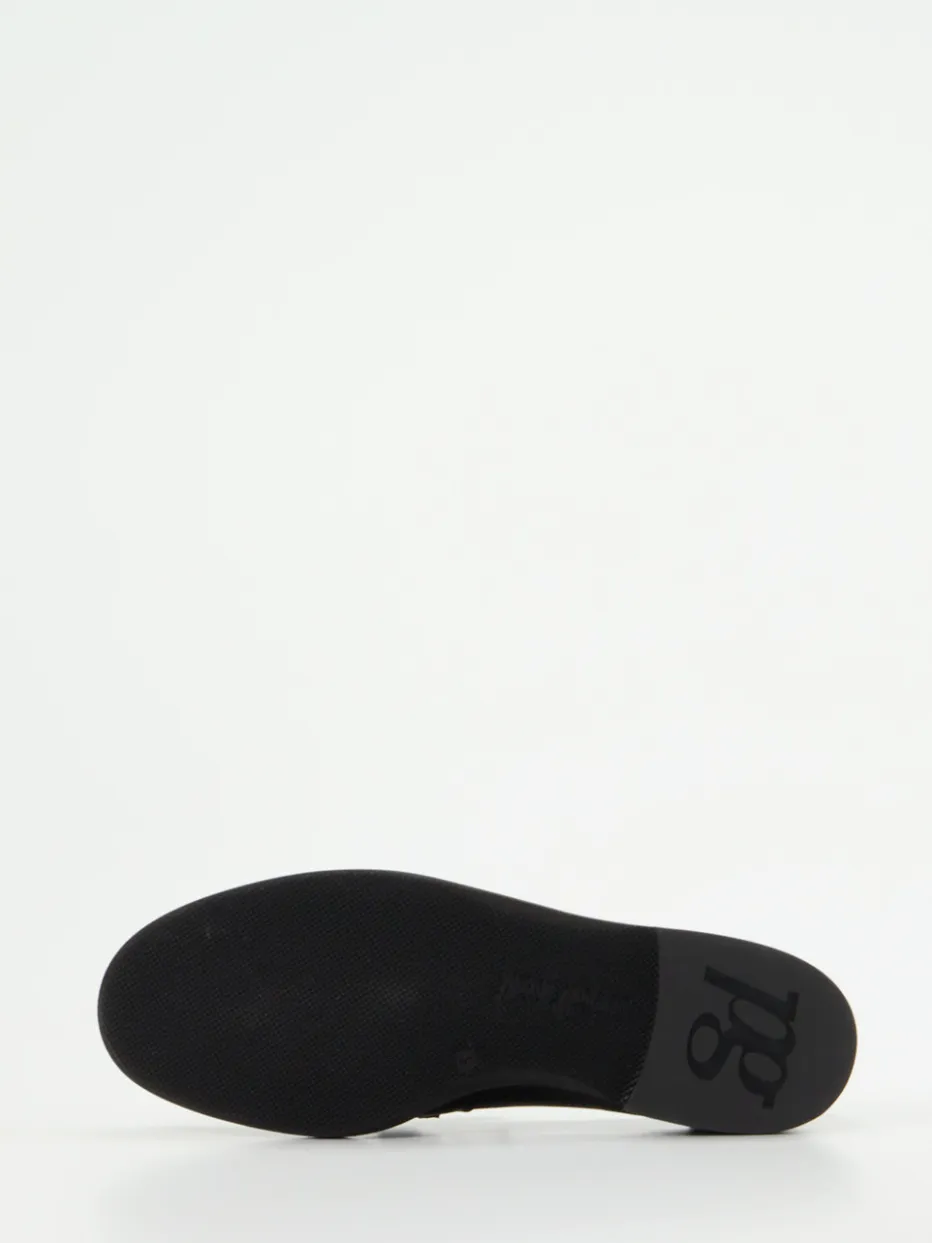 Stil trifft auf subtile Eleganz.Paul Green präsentiert einen Damen-Slipper, der klassische Linienführung mit modernem Feingefühl vereint. Ob fürs Büro oder gehobene Alltagsoutfits – dieser Loafer erfüllt den Anspruch an Komfort und Qualität. Gefertigt aus matt schwarzem Kalbleder, überzeugt er mit einem minimalistischen Schnitt, sanft gerundetem Leisten und einer silberfarbenen Horsebit-Spange. Kleine Elasteinsätze an der Zunge erleichtern das Hineinschlüpfen, während die leicht profilierte Gummisohle in Kombination mit einer soften Innenpolsterung sicheren Halt und angenehmes Laufgefühl bietet. Der Look orientiert sich am „Quiet Luxury“-Trend und ergänzt stilvoll den „Modern Heritage“-Stil. Ein zeitloser Begleiter mit klarer Ästhetik – typisch Paul Green.