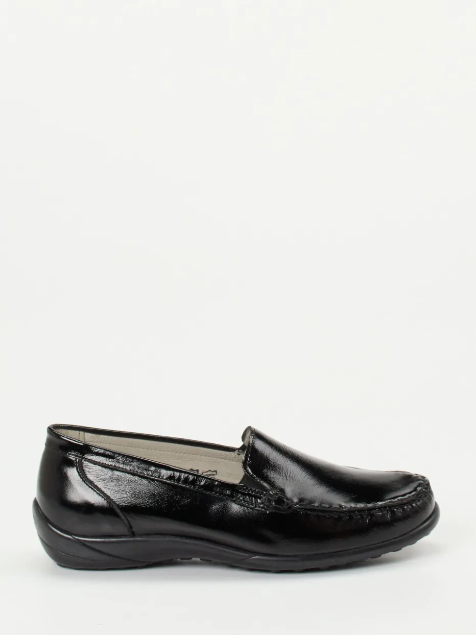 Dieser bequeme Komfort-Loafer kombiniert glänzendes Lackleder mit ergonomischer Ergonomie und rutschhemmender Flexibilität – modern interpretiert im Stil „Quiet Luxury“.