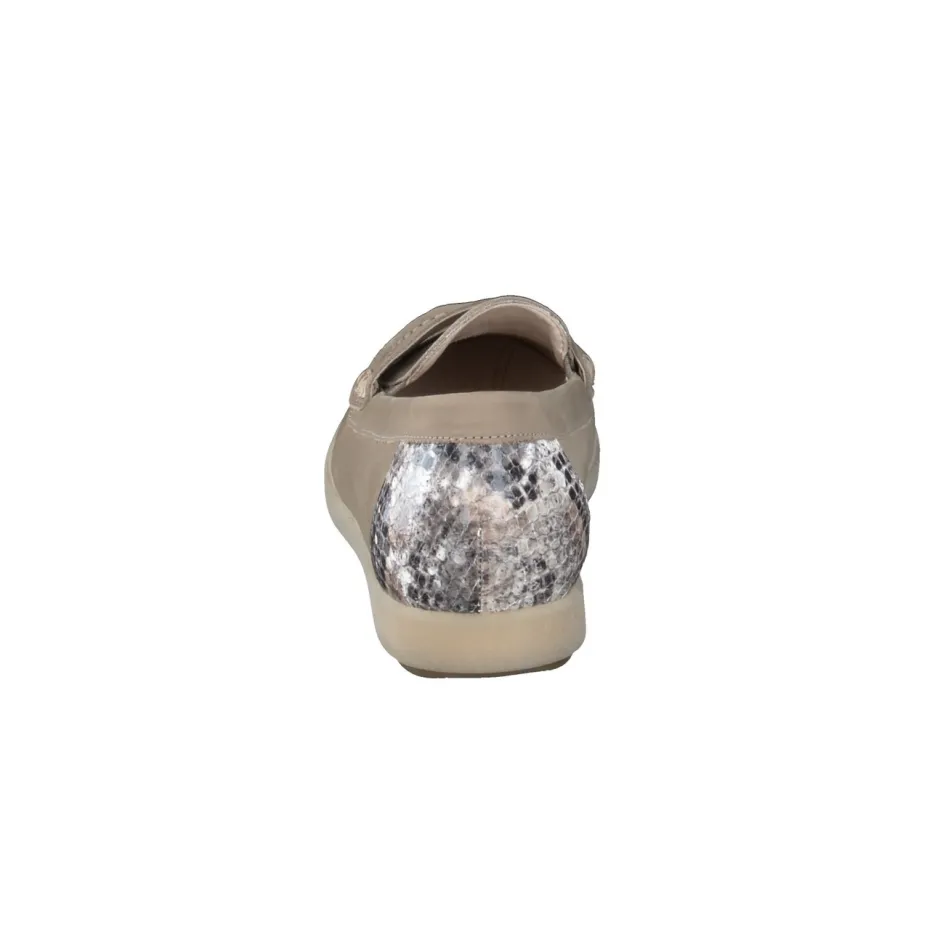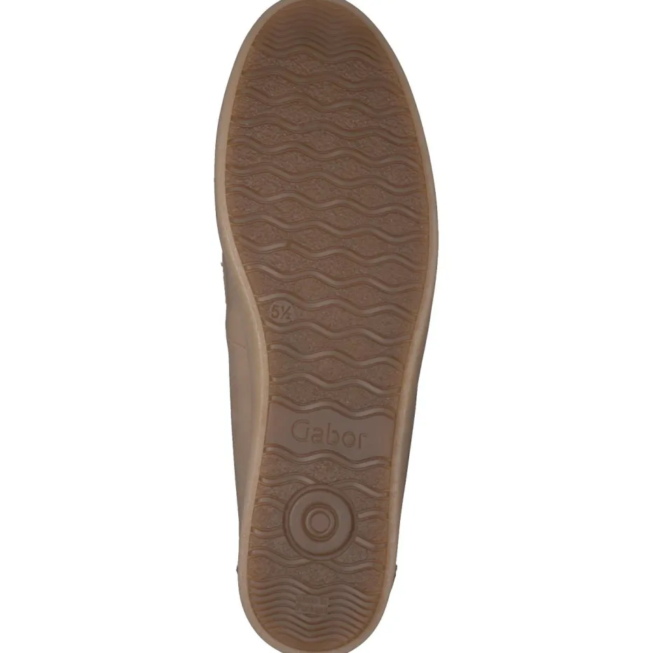 Eleganter Komfort für vielseitige Outfits.Gabor Comfort präsentiert einen bequemen Damen-Slipper in klassischer Loafer-Optik. Ideal für Tage mit wechselnden Anforderungen: Das beigefarbene Nubukleder wirkt durch seine matte, samtige Oberfläche edel und zurückhaltend. Die tonige Ziernaht und der charakteristische Loafer-Riegel betonen das geradlinige Design, während die strukturierte Fersenkappe in stilvoller Schlangenprägung einen modischen Akzent setzt. Dank elastischer Einsätze und weich gepolsterter, herausnehmbarer Innensohle bietet er angenehmen Halt bei langer Tragedauer – auch im Büro. Die leichte Gummisohle unterstützt einen sportlich-eleganten Look und sorgt für Alltagskomfort. Ein harmonisch abgestimmter Schuh, der Komfort und subtile Raffinesse vereint.