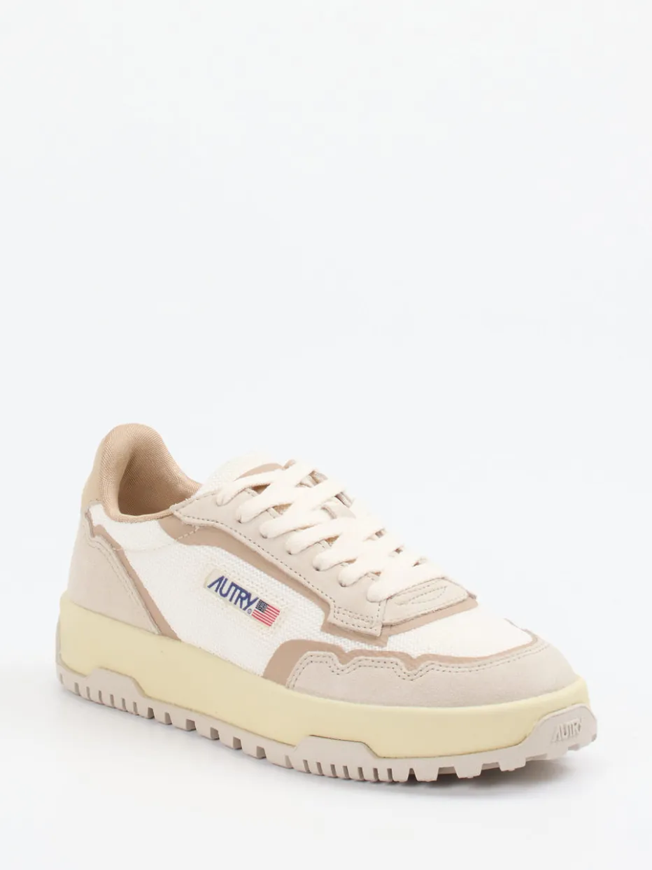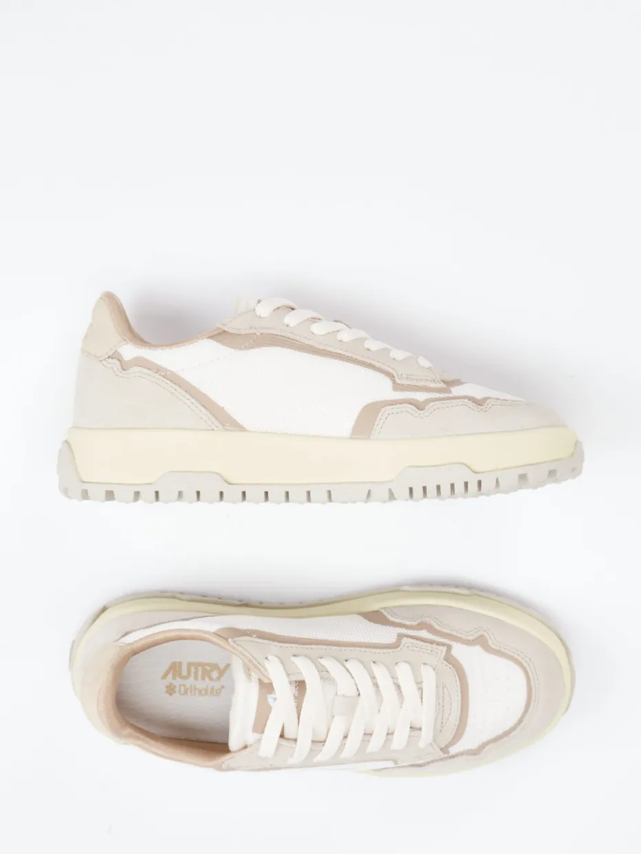 Autry kombiniert in diesem Sneaker sportives Streetwear-Design mit dezenter Eleganz. Für entspannte City-Tage oder den nächsten Urlaub: Das Modell vereint eine beige Farbpalette mit einer klassischen flachen Silhouette. Das Obermaterial aus wind- und wasserdichtem Gewebe nutzt canvasartige Flächen und Veloursleder-Overlays mit leicht genarbter Struktur. Eine robuste Gummiprofilsohle sorgt für Halt, Schnürung für Flexibilität. Die tonale Logo-Stickerei und Retro-Anklänge machen ihn trendstark in „Quiet Luxury“-Manier. Stilvoll zu naturfarbenen Accessoires oder minimalistischen Outfits. Der Sneaker überzeugt mit unaufgeregtem Stil und komfortorientierter Funktionalität.