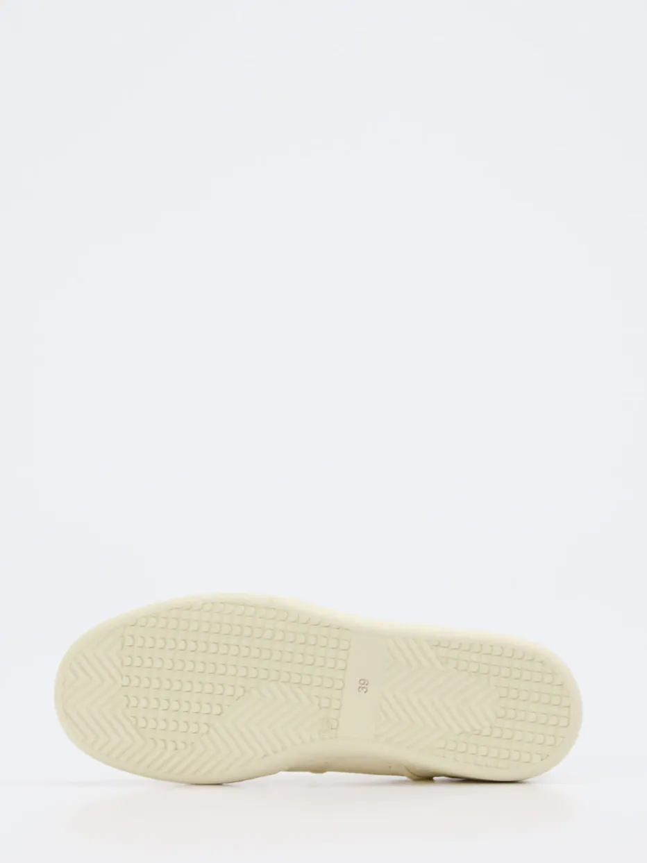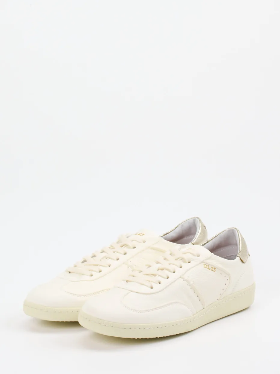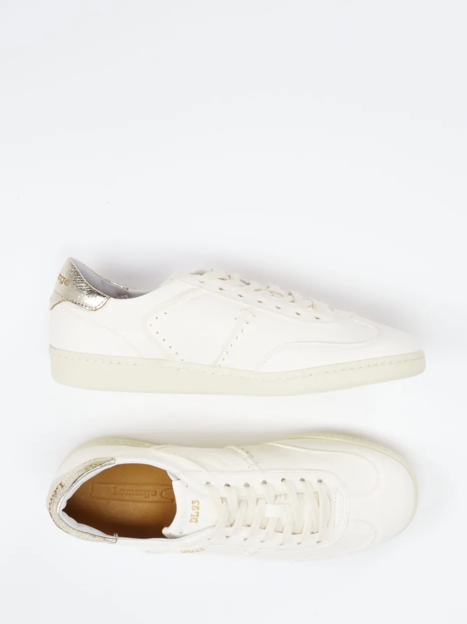 Schlichtheit trifft auf Glanz.Lemargo liefert mit diesem Damen-Sneaker ein stilvolles Low-Top-Modell für Alltag und Business. Die Kombination aus softem Elchleder in Cremeweiß und goldfarbenen Metallic-Details unterstreicht die klare Form und setzt elegante Akzente. Die genarbte Lederstruktur verleiht dem Design eine handwerkliche Note, während das goldene Fersenpatch und die fein geprägten Logos subtile Highlights setzen. Dank Schnürverschluss, komfortablem Wechselfußbett und atmungsaktivem Frotteefutter eignet sich der Sneaker auch für längere Wege. Der Look ist inspiriert von Retro-Sportswear – ideal für „Quiet Luxury“-Outfits in minimalistischem Stil. Ein Lemargo-Schuh mit klarer Ästhetik und funktionalem Komfortanspruch.