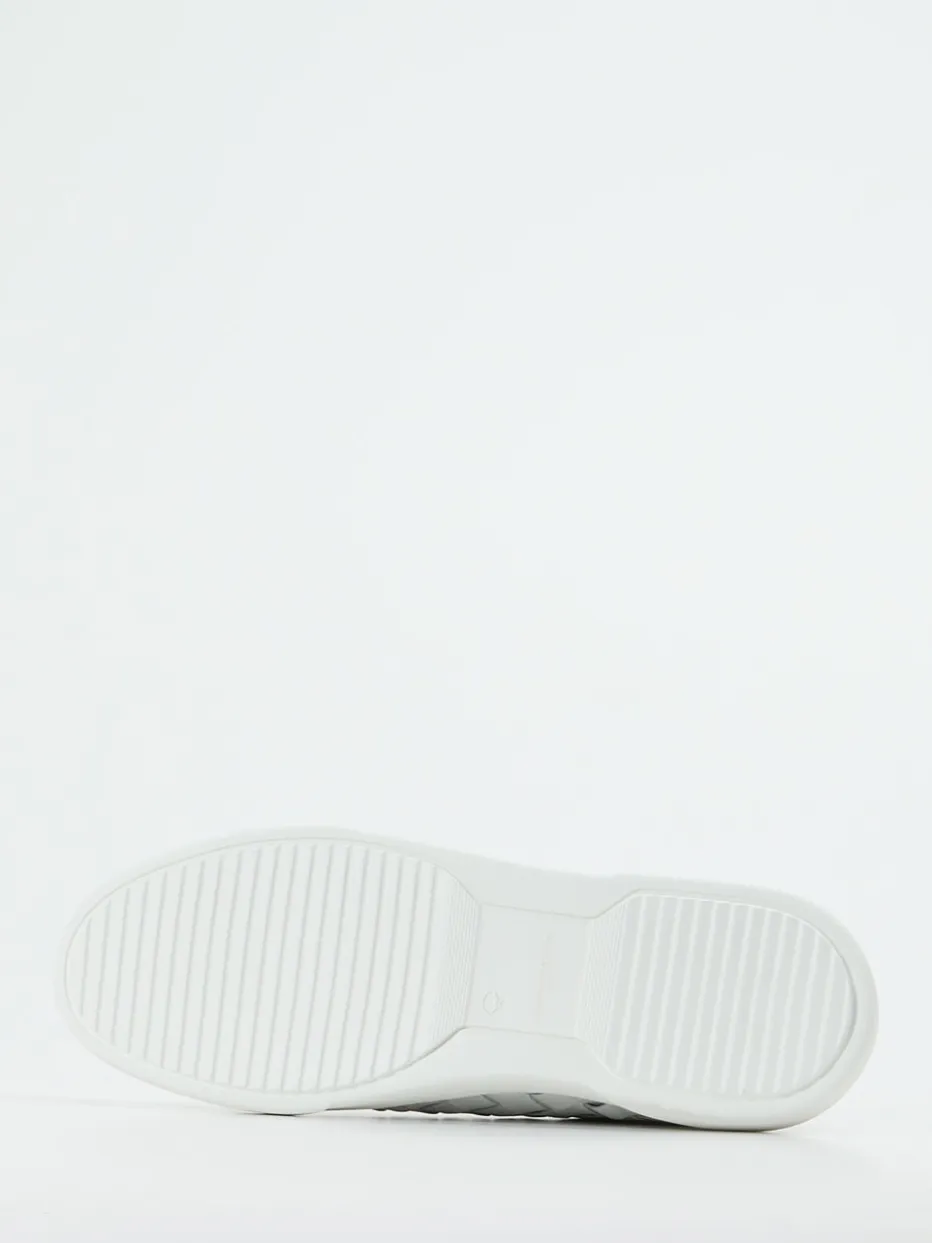 Minimalistische Eleganz trifft smarte Struktur.Konstantin Starke interpretiert den klassischen Sneaker mit edlem Flechtleder neu. Ideal für Büro und Freizeit überzeugt das Modell durch seine weiße Farbgebung und die dezente Flechtstruktur im hochwertigen Kalbleder. Die mattierte Oberfläche unterstreicht das cleane Design, während Schnürung, gepolsterter Schaftrand und ein wechselbares Lederfußbett maximalen Komfort garantieren. Ton-in-Ton-Nähte und ein geprägtes Logo auf der Zunge runden den modernen Look ab. Als Teil des „White-on-White“-Trends perfekt kombinierbar zu hellen Chinos oder schmalen Anzughosen. Premium-Optik mit markantem Detailreichtum – typisch Konstantin Starke.