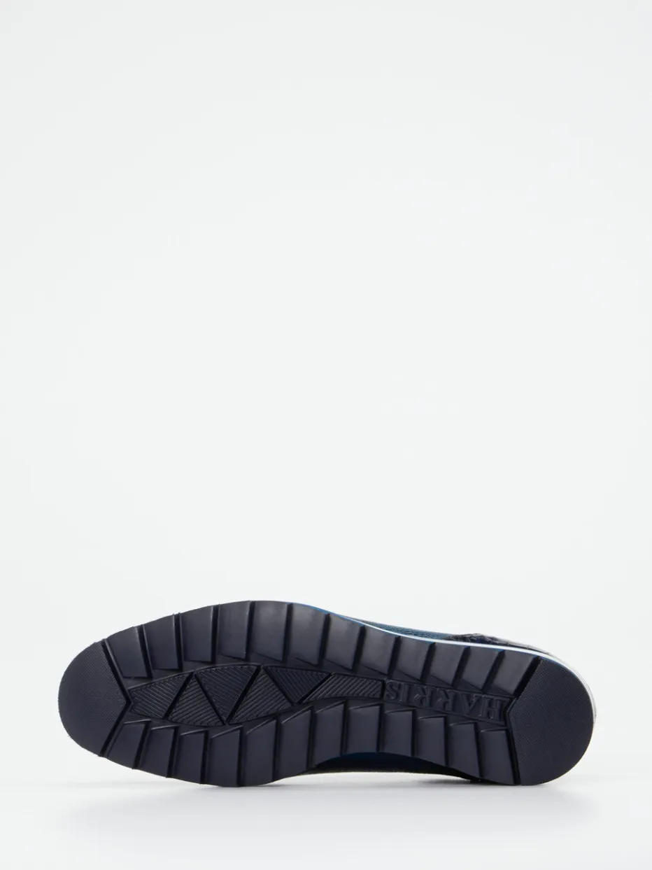 Luxuriöser Streetstyle mit Charakter.Der Herren-Sneaker von Harris vereint italienische Handwerkskunst mit expressivem Design. Ideal für urban inspirierte Looks mit modischem Anspruch: Glänzend geprägtes Leder in Krokoprägung trifft auf eine klassische, schmale Silhouette mit Schnürung. Die dominanten Blautöne reichen von kräftigem Saphir- bis zu tiefem Mitternachtsblau – betont durch eine mehrlagige Gummisohle mit Farbstreifen und markantem Profil. Ein seitliches Metall-Label und silberfarbene Ösen runden das Gesamtbild elegant ab. Als Teil des „Quiet Luxury“-Trends passt dieses Modell besonders gut zu dunkler Lederjacke und Slim-Fit-Jeans. Harris kombiniert stilübergreifendes Design mit hochwertigen Materialien und exzellenter Verarbeitung.