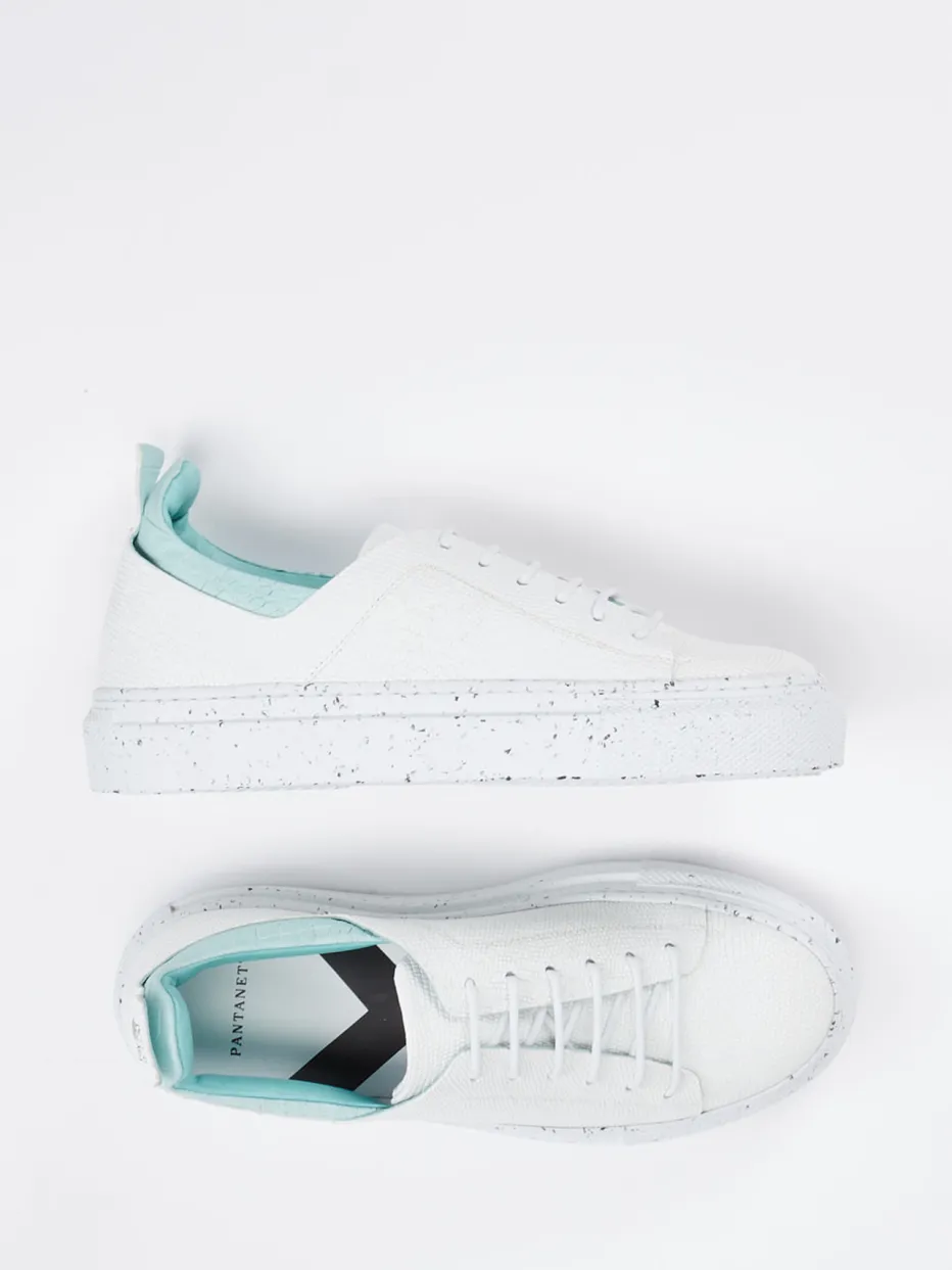 Unisex-Sneaker mit Struktur und Sommernote.Pantanetti liefert mit diesem Low-Top-Sneaker ein Modell für Freizeit und Urlaub mit Stil. Die Kombination aus geprägtem Leder und genarbter Oberfläche setzt einen subtilen Akzent im cleanen Offwhite-Look. Das mintfarbene, geprägte Innenfutter bringt frische Farbtiefe – ein reizvoller Kontrast zur dezenten Gesamtgestaltung. Die gesprenkelte Gummisohle mit leichtem Plateau sorgt für angenehme Höhe und Streetwear-Flair. Dank klassischer Schnürung und gepolstertem Einstieg entsteht hoher Tragekomfort. Minimalistische Ästhetik trifft auf fein gesetzte Trendhinweise. Kombiniert zu Canvas-Tasche oder pastellfarbenen Accessoires entsteht ein harmonisches Sommerstyling. Hochwertige Materialien und italienisches Feingefühl machen diesen Sneaker zu einem stilbewussten Allrounder.