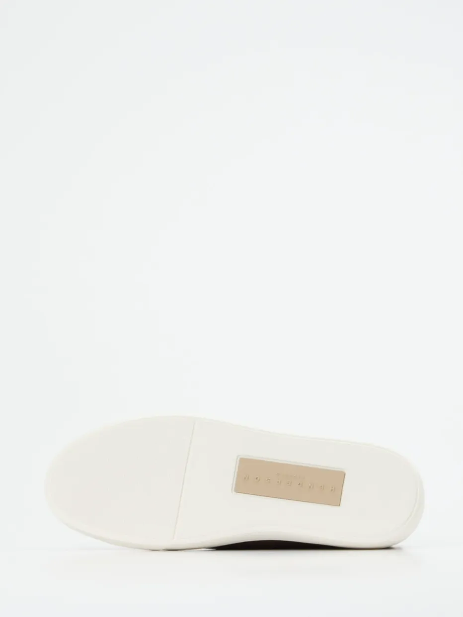 Geradliniger Luxus für moderne Auftritte.Henderson präsentiert einen Low-Top-Sneaker für Herren, der handgefertigte Qualität mit zeitloser Ästhetik verbindet. Für Tage, an denen Komfort und Stil gleichermaßen gefragt sind, überzeugt dieser Sneaker mit softem, genarbtem Hirschleder in dunklem Mokkabraun – elegant kombiniert mit einer weißen Gummisohle. Die tonale Schnürung und das geprägte Zungenlogo unterstreichen das minimalistische Design. Perforationen an den Seiten sowie eine funktionale Zuglasche an der Ferse setzen dezente Akzente. Inspirationsquelle sind Quiet Luxury und der Clean Sneaker Trend der Saison. Ideal zu Chinos und Feinstrickpullover für moderne Business-Casual-Looks. Ein Premium-Sneaker, der feines Design und Tragekomfort italienischer Herkunft harmonisch vereint.