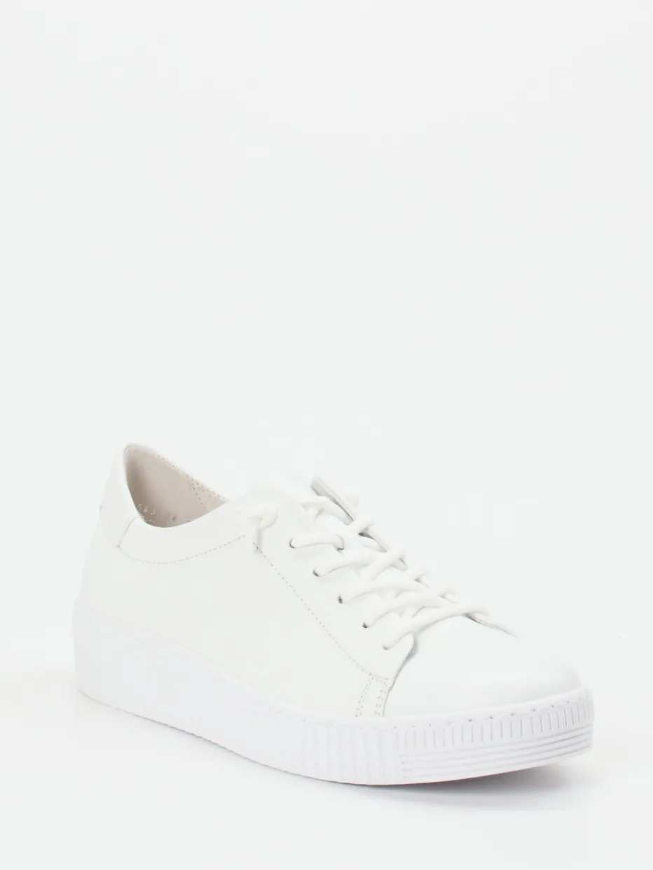 Minimalismus mit Komfortpotenzial.Gabor präsentiert einen hochwertigen Sneaker für Damen mit reduziertem Design und gefragtem Alltagskomfort. Ideal für entspannte City-Spaziergänge oder lässige Outfits im Alltag: Der weiße Low-Top überzeugt mit samtig glattem Hirschleder, dezenter Schnürung mit Knotendetail sowie einer rutschhemmenden Gummisohle. Die klare Silhouette, Ton-in-Ton-Nähte und das feine Kalblederfutter betonen den cleanen Look. Das auswechselbare OptiFit-Fußbett mit Platz für Einlagen sorgt für individuellen Tragekomfort. Ein Schuh, der den „All White Look“ der Saison gekonnt unterstützt und sich mühelos mit Monochrom-Outfits oder soften Neutrals kombinieren lässt. Markentypischer Vorteil: Gabor Best Fitting für Bewegungsfreiheit und Passformqualität.
