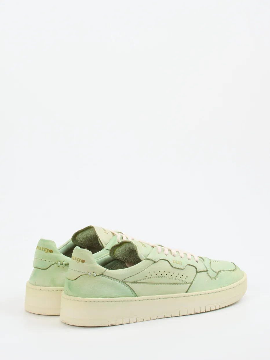 Ob für entspannte City-Walks oder stilvolle Reisetage: Das salbeigrüne Hirschleder mit matter Oberfläche bietet in Kombination mit perforierten Partien und softer Polsterung ein angenehmes Tragegefühl. Tonale Nähte, goldfarbene Logos sowie eine flache Silhouette setzen gekonnte Designakzente. Streetwear-geprägt und im Pastell-Trend verankert, passt der Schuh ideal zu sommerlichen Outfits – etwa mit Chinos oder leichten Socken kombiniert.