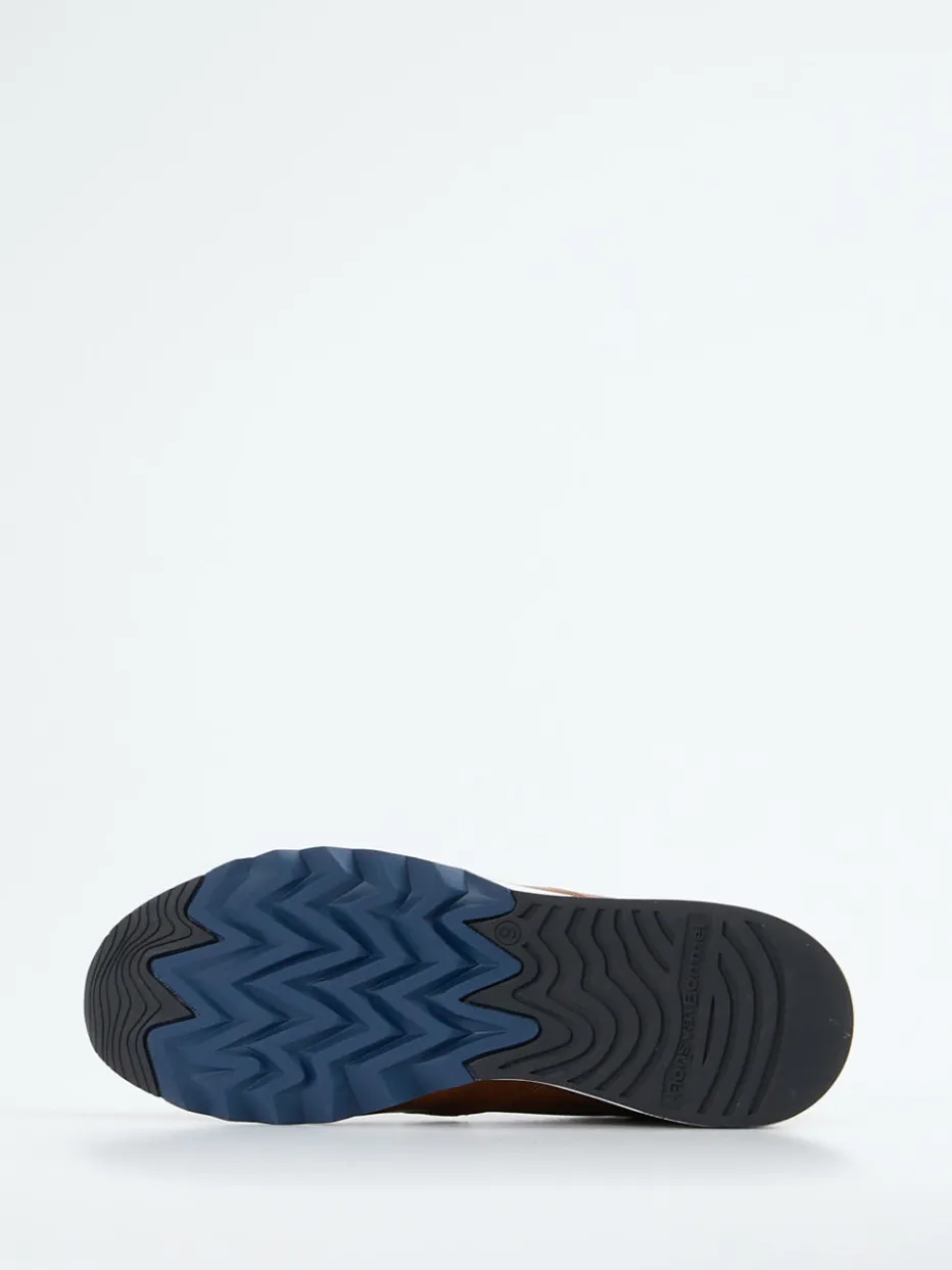 Sportliche Eleganz für jeden Tag. Floris van Bommel präsentiert einen Herren-Sneaker der Luxusklasse. Bei Meetings, City-Walks oder Casual Fridays überzeugt dieser Sneaker mit hochwertigem Kalbleder in cognacbrauner Nuance und moderner Silhouette. Die feine Kombination aus glatter und genarbter Oberfläche wird durch textile Mesh-Einsätze smart ergänzt. Kontrast-Schuhbänder, weiße Zickzack-Gummisohle und dezente Logo-Details setzen visuelle Akzente. Die gepolsterte Innenausstattung mit wechselbarer Sohle bietet zusätzlichen Komfort. Als stilvoller Vertreter der Retro-Runner und Color-Blocking-Trends passt er bestens zu Jeans, Chinos oder unkomplizierten Büro-Looks. Ein stilsicherer Schuh mit handwerklichem Anspruch und urbaner Note.