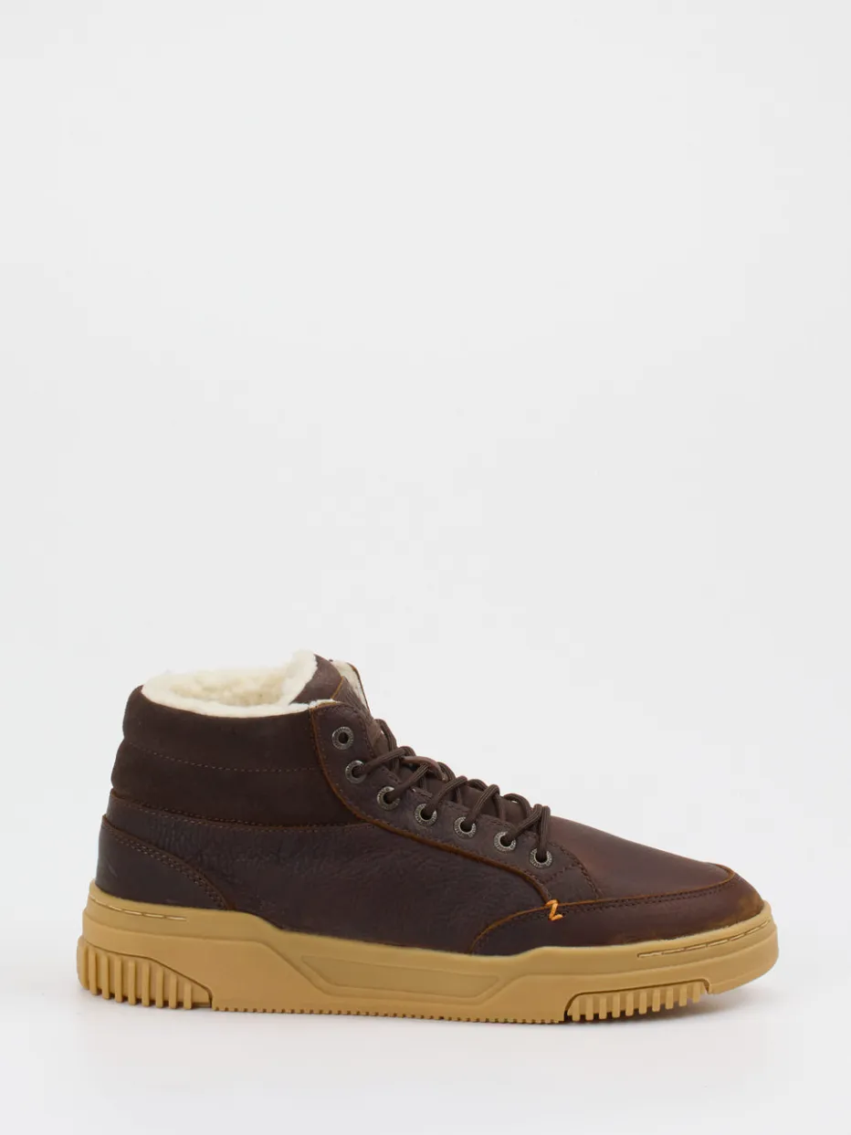 Dieser gefütterte Mid-Top-Sneaker kombiniert robustes Kalbleder mit wintertauglicher Ausstattung und urbaner Silhouette – ideal für kalte Tage mit Stilbewusstsein.