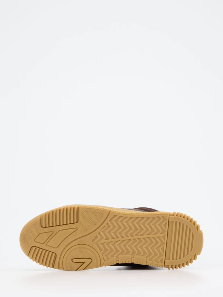 Robuste Winteroptik trifft urbanen Komfort.Die Marke HUB präsentiert einen stilvollen Mid-Top-Sneaker für Herren mit Fokus auf Alltag und Outdoor. Bei kühlen Bedingungen bietet das warme Textilfutter angenehme Isolation, während außen genarbtes Kalbleder in Dunkelbraun Widerstandsfähigkeit und Struktur verleiht. Die knöchelhohe Silhouette mit Schnürung durch Metallösen bietet stabilen Halt, ergänzt durch eine rutschfeste Gummisohle mit technischem Profil. Dezente Ton-in-Ton-Nähte und eine orange Kontrastnaht sorgen für subtile Akzente; ein geprägtes Logo auf der Zunge rundet das Design ab. Inspiriert von Retro-Hiking und Workwear lassen sich diese Sneaker vielseitig kombinieren – etwa mit Thermo-Jeans oder Steppjacke. Wärme, Funktion und Stil – vereint im charakteristischen HUB-Look.