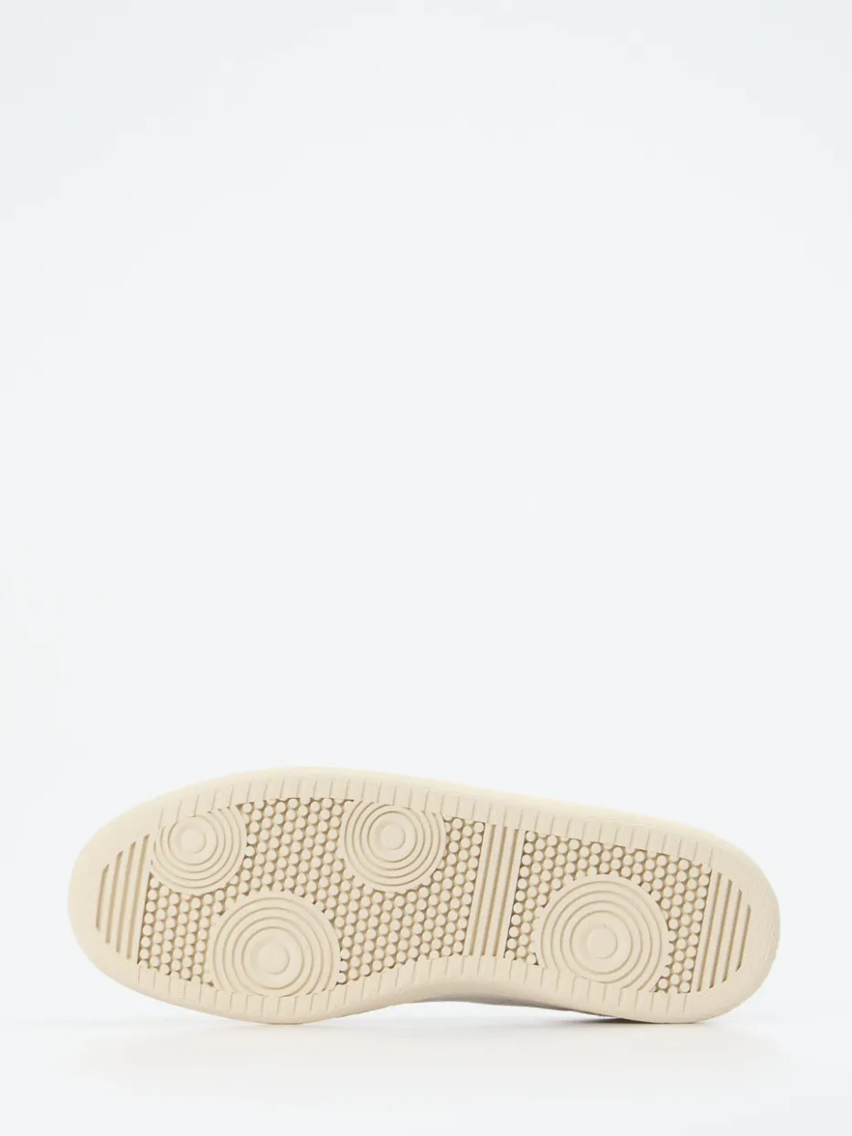 Ideal für urbane Styles mit Anspruch auf Understatement: Das Modell kombiniert edles, weißes Kalbleder mit samtig angeschliffenen Velours-Overlays in Hellgrau und einem schwarzen Fersenbesatz. Eine klare Linienführung, goldfarbene Logos und eine tonige Schnürung akzentuieren den cleanen Look. Die elfenbeinfarbene Gummisohle zeigt ein griffiges Profil und sorgt – ebenso wie das gepolsterte Wechselfußbett – für angenehmen Tragekomfort. Dezente Perforationen und hochwertige Verarbeitung unterstreichen den modernen Quiet-Luxury-Trend.