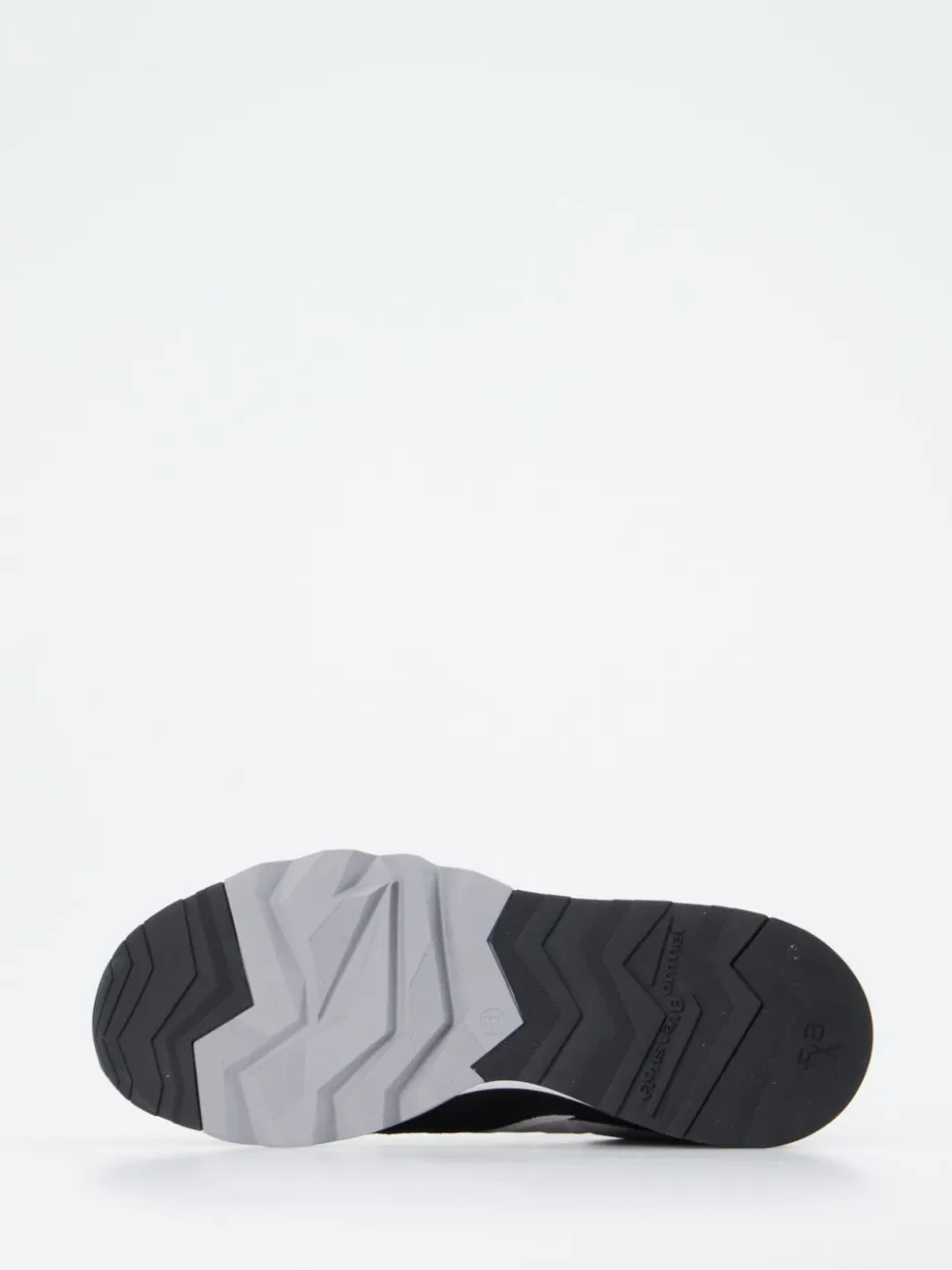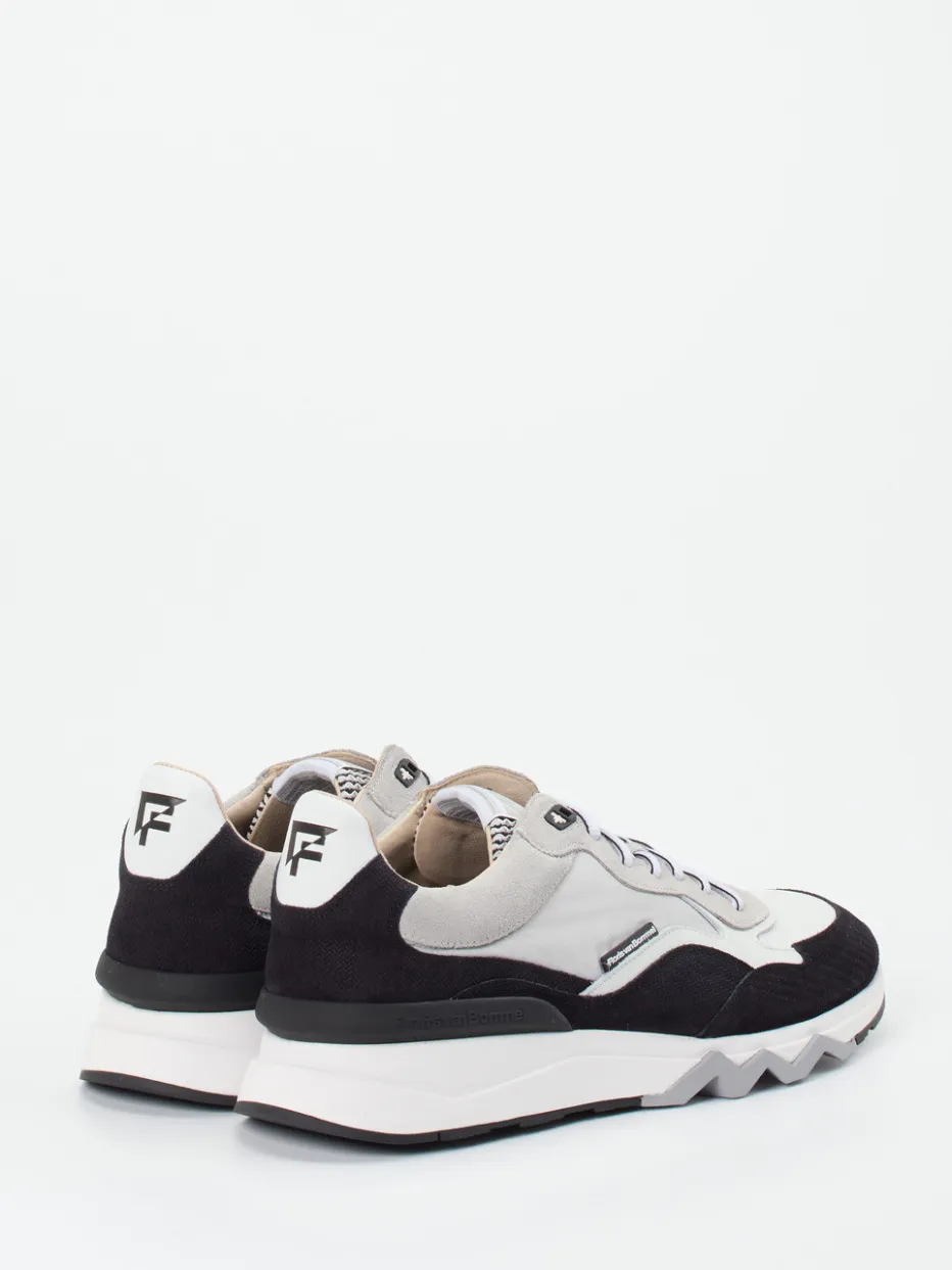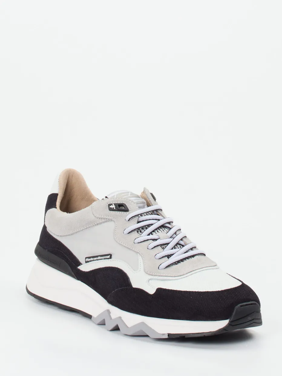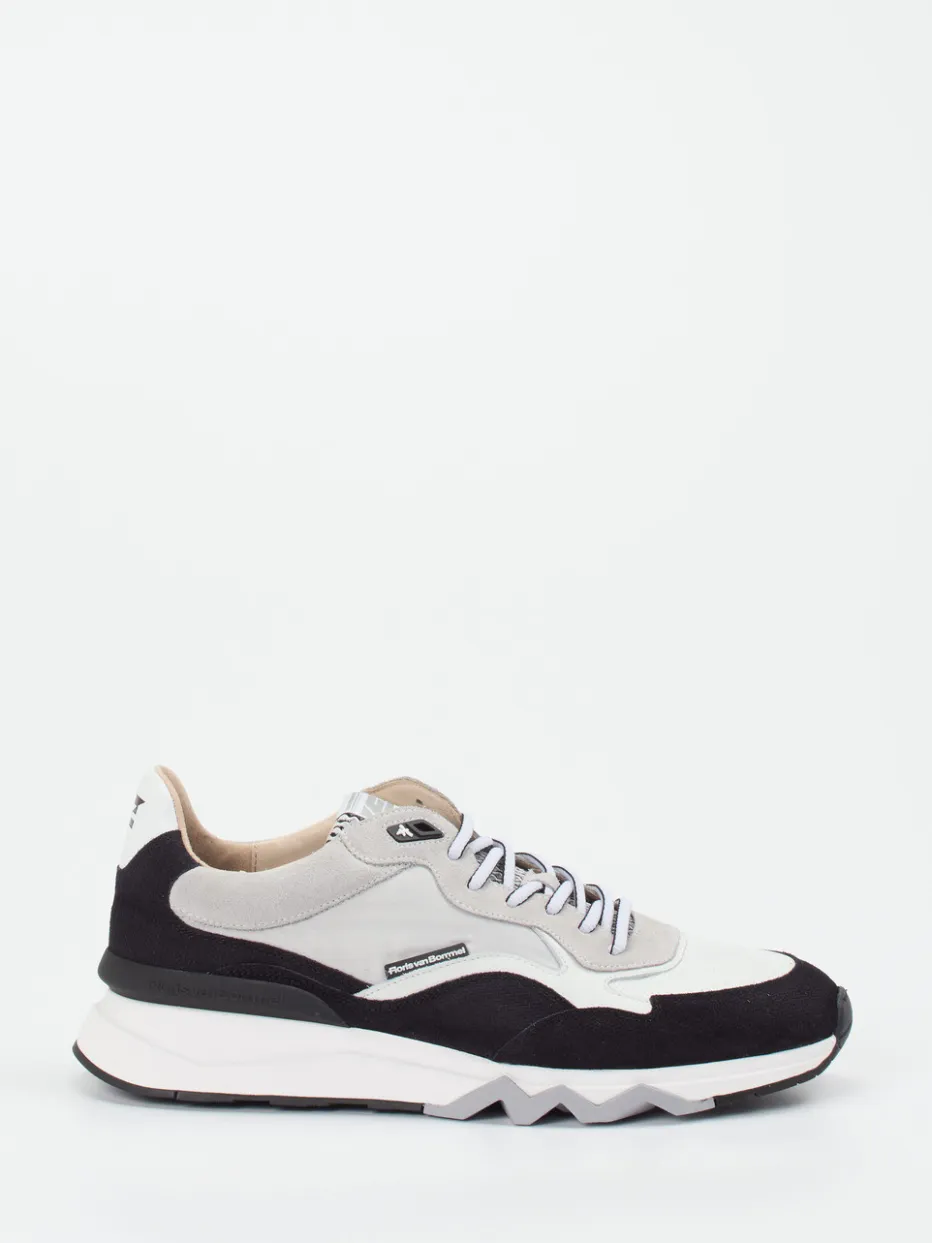 Progressiver Look mit Retro-Charme.Floris van Bommel präsentiert diesen Herren-Sneaker im Low-Top-Stil als Fusion aus Streetwear und sportlicher Eleganz. Für Tage mit vielen Kilometern bietet das Modell durch den gepolsterten Schaft und die griffige Gummisohle spürbaren Komfort. Gefertigt aus hochwertigem Kalbleder, ergänzt um samtig angeschliffenes Veloursleder und atmungsaktives Mesh, entsteht ein spannender, leicht strukturierter Materialmix. Die Farbgestaltung in Hellgrau, Schwarz und Weiß wirkt zugleich clean und stylisch. Das mehrfarbige Schnürsystem, ein prägnanter Logo-Patch sowie die Zickzack-Profilsohle setzen dynamische Akzente. Im Trend liegen Chunky-Looks mit Laufschuh-Silhouette. Markentypische Qualität und raffinierte Details für moderne Casual-Outfits.